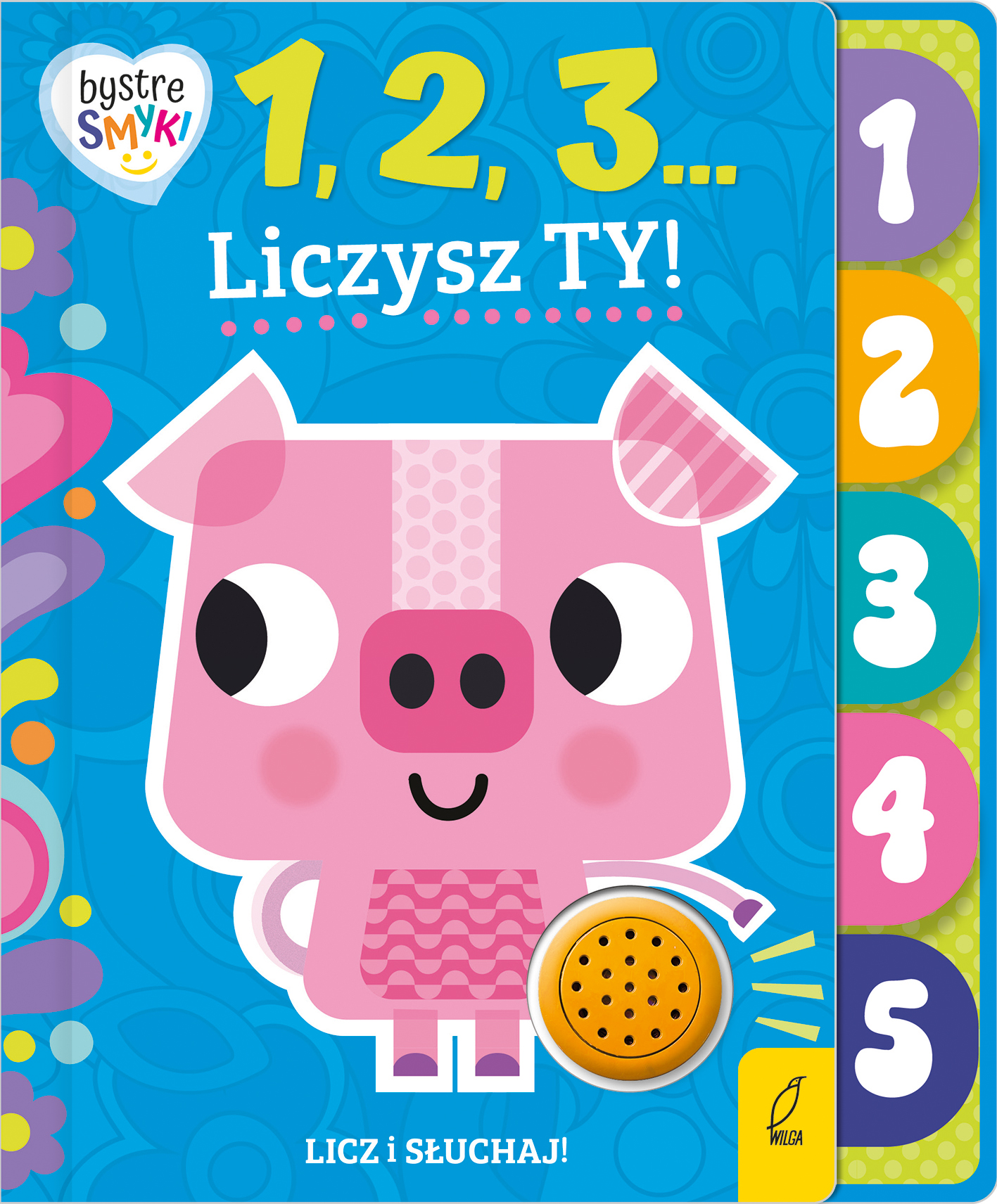 „Bystre smyki. 1, 2, 3… Liczysz Ty!” to interaktywna książeczka stworzona z myślą o najmłodszych dzieciach, które dopiero zaczynają poznawać świat liczb. Każda strona zaprasza malucha do zabawy z uroczymi, barwnymi zwierzątkami – świnką, krówką, kózkami i innymi bohaterami, którzy pomagają oswoić pierwsze cyfry w naturalny, radosny sposób. Krótkie, rytmiczne wierszyki nie tylko bawią, ale też wspierają rozwój mowy i pamięci, a piękne, kolorowe ilustracje zachęcają do wspólnego oglądania i nazywania zwierząt.