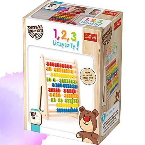1,2,3 Liczysz Ty! kształtuje umiejętności logicznego myślenia i koncentracji, a także wspomaga naukę nazywania kolorów i liczb dzięki przesuwanym, wielobarwnym koralikom