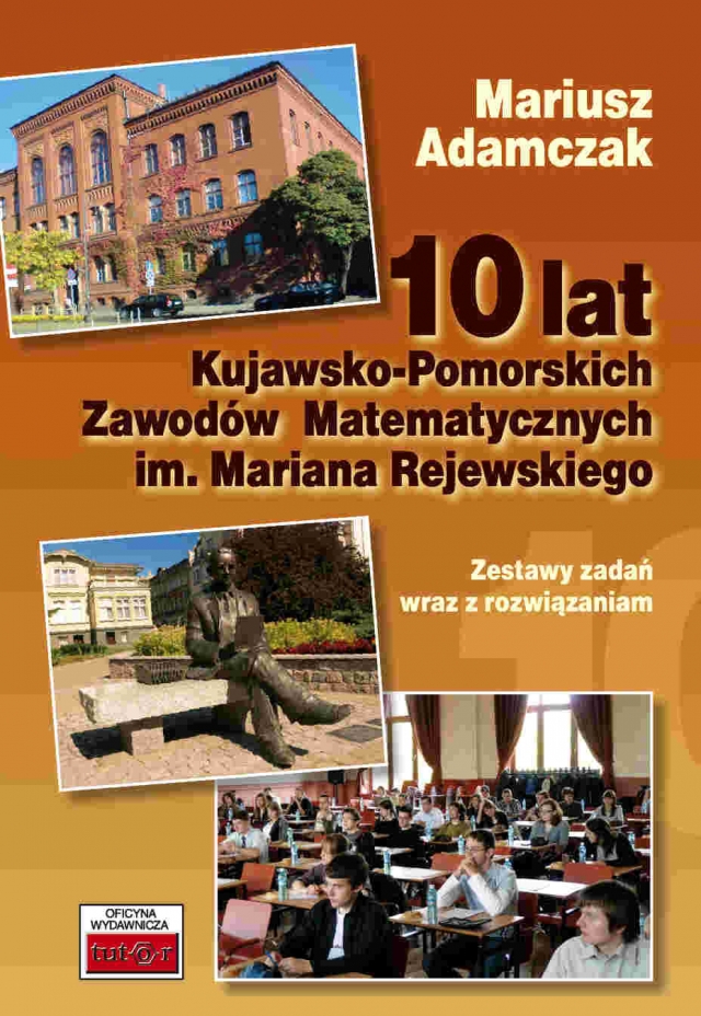 Niniejsza publikacja autorstwa Mariusza Adamczaka - 10 lat Kujawsko-Pomorskich Zawodów Matematycznych im. Mariana Rejewskiego obok zestawów zadań konkursowych i ich rozwiązań prezentuje także historię zawodów oraz nazwiska ich laureatów. Książka przeznaczona jest dla szerokiego kręgu uczniów gimnazjów i szkół ponadgimnazjalnych, którzy przygotowują się do udziału w olimpiadach i konkursach matematycznych. Mariusz Adamczak jest głównym organizatorem oraz autorem większości zadań konkursowych Kujawsko-Pomorskich Zawodów Matematycznych im. Mariana Rejewskiego. Zawody te zostały rozegrane po raz pierwszy w roku szkolnym 2000/2001 i były skierowane do uczniów klas II i III czteroletniego liceum. Obecnie są przeznaczone przede wszystkim dla uczniów klas I i II liceów ogólnokształcących. W dwustopniowych zawodach biorą udział uczniowie z województwa kujawsko-pomorskiego oraz gościnnie uczniowie z I Liceum Ogólnokształcącego im. Stanisława Duboisa w Koszalinie. Od 2005 roku są to zawody imienia Mariana Rejewskiego - wybitnego polskiego matematyka zasłużonego przy rozszyfrowaniu `Enigmy`, absolwenta Państwowego Gimnazjum Klasycznego w Bydgoszczy (1923 r.), którego tradycje kontynuuje I Liceum Ogólnokształcące im. Cypriana Kamila Norwida.