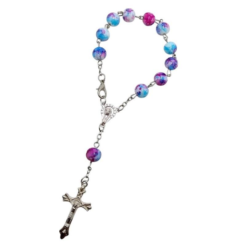 Dziesiątka Różańca Różowo-Niebieska,Szkło Imitujące Kamień - Zapinana.
