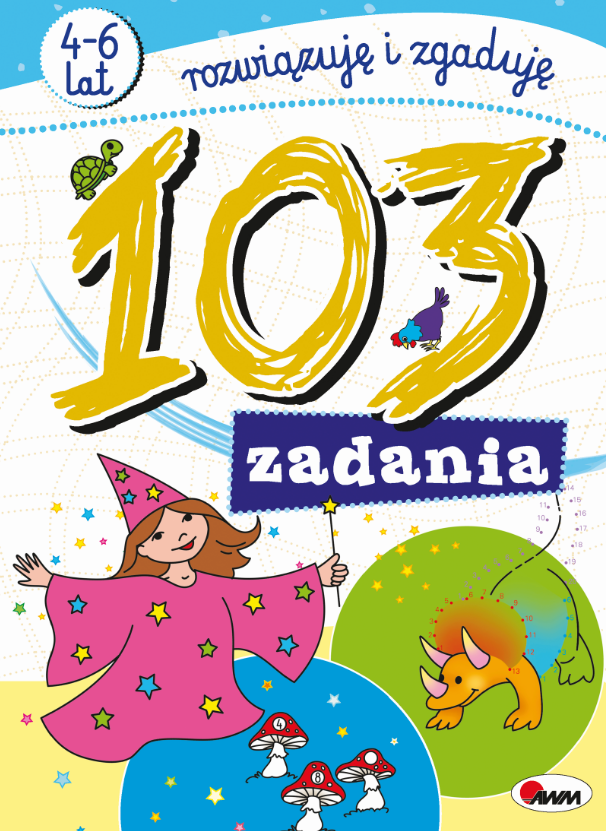 103 zadań to labirynty, rebusy, znajdowanie podobieństw i różnic, rysowanie według wzoru, dodawanie, poznawanie liter oraz mnóstwo innych, ciekawych zabaw i zagadek a dodatkowo wiele ilustracji do samodzielnego kolorowania! 80 stron wspaniałej zabawy! • kształcenie umiejętności myślenia i kojarzenia • ćwiczenie spostrzegawczości • doskonała pomoc w nauce dodawania i pisania dla dzieci w wieku 4–6 lat