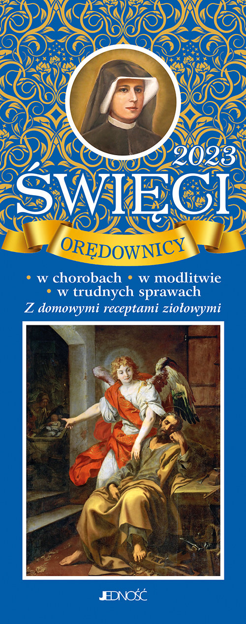 Kalendarz w układzie tygodniowym: z imionami solenizantów i z najważniejszymi wydarzeniami w ciągu roku. Przybliżamy w nim także postacie świętych patronów dnia i tygodnia: prezentując ich życie, modlitwy za ich przyczyną, wymieniając sprawy, w których orędują i wstawiają się za nami. W publikacji zamieściliśmy ponadto skuteczne receptury ziołowe wspomagające nasze zdrowie cielesne, co jak wiadomo, jest nie bez znaczenia dla kondycji psychicznej i duchowej. W kalendarzu znajdują się również miejsca do notowania.