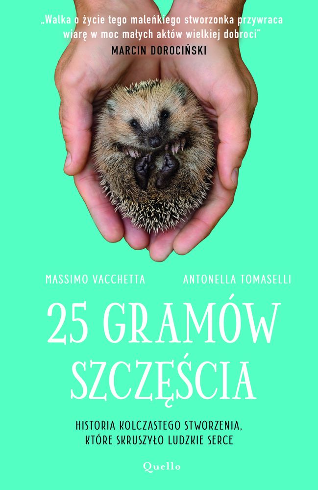 Walka o życie tego maleńkiego stworzonka przywraca wiarę w moc małych aktów wielkiej dobroci. MARCIN DOROCIŃSKI „25 gramów szczęścia” to tysiąc ton miłości! Miłości przeniesionej na karty książki męską ręką. Nie pamiętam już, kiedy płakałam, czytając. Tu płakałam ze wzruszenia prawie od pierwszej do ostatniej strony. Dziękuję, panie Massimo, kolego po fachu. Teraz czuję, że nie jestem sama. DOROTA SUMIŃSKA Historia kolczastego stworzenia, które skruszyło ludzkie serce Osierocony przez matkę kilkudniowy jeż zostaje przyniesiony do kliniki weterynaryjnej. Waży zaledwie 25 gramów. Głodny i mocno wyziębiony, jest bliski śmierci.Kiedy weterynarz Massimo Vacchetta zaczyna zajmować się małym pacjentem, rodzi się między nimi specjalna więź. Lekarz poświęca każdą chwilę, by uratować kolczaste stworzenie przed pewną śmiercią. Ciekawska i figlarna samiczka jeża, którą Massimo nazywa Ninną, w końcu odzyskuje siły i stopniowo wywraca życie weterynarza do góry nogami.Czy przywiązany do zwierzątka weterynarz będzie potrafił wypuścić je na wolność? Nie od początku Massimo zdaje sobie sprawę z tego, że to dopiero początek jego przygody z jeżami.PATRONATY:Ośrodek Rehabilitacji Jeży w Kłodzku – „Jerzy dla Jeży”, Fundacja Przytul Jeża, Jeżurkowo Ośrodek Rehabilitacji Zwierząt, Karmimy Psiaki i Leśne