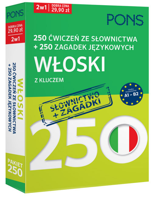 250 ćwiczeń ze słownictwa Włoski + 250 zagadek