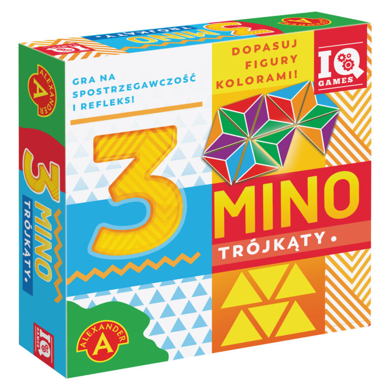 Nowa propozycja z lubianej przez wszystkich miłośników łamigłówek serii IQ Games przypadnie do gustu graczom, którzy lubią dynamiczną rozgrywkę. 3-Mino to świetny trening spostrzegawczości i refleksu. Rozgrywka rozpoczyna się od ułożenia na środku stołu figury w kształcie trójkąta. Zadaniem uczestników jest jak najszybsze dopasowanie kolorowych trójkątów z własnych zasobów, tak, aby stykały się z już ułożonymi na stole krawędziami i takimi samymi kolorami. Znakomitym urozmaiceniem są dwa poziomy trudności, które pozwolą na satysfakcjonująca zabawę początkującym, jak i bardziej zaawansowanym. Natomiast wybór spośród dwóch wariantów gry pozwala uporządkować rozgrywkę na 10-sekundowe tury jednego gracza lub postawić na większy chaos i układanie trójkątów jednocześnie przez wszystkich rywali.