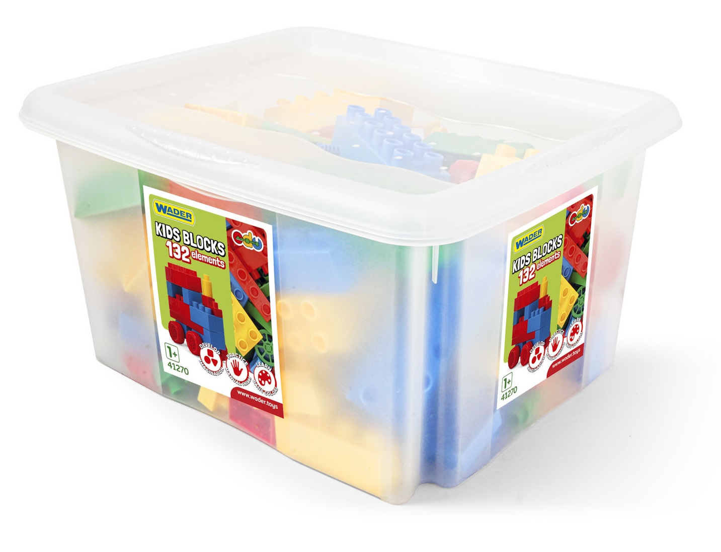 Zestaw 132 klocków charakteryzujący się możliwością tworzenia wielu ciekawych budowli. Klocki wyróżniają się świetnym wykonaniem i dużą wytrzymałością. Pobudzają kreatywność oraz doskonale rozwijają zdolności manualne najmłodszych. Całość zapakowana jest w poręczny plastikowy pojemnik umożliwiający zachowanie porządku po skończonej zabawie.
