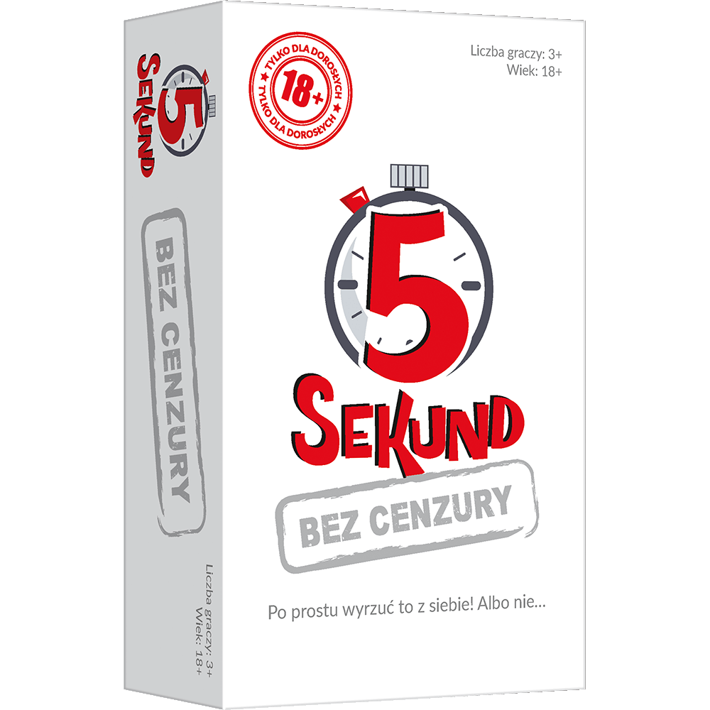 W grze pytania zostały przygotowane z myślą o pełnoletnich graczach, a odpowiedzi na nie obejdą się bez dwuznacznych aluzji. Wymienienie trzech zastosowań Twojego języka wydaje się z pozoru łatwe, ale czy potrafisz to zrobić w 5 sekund, gdy właśnie plącze Ci się język? Pozostali gracze bacznie Cię obserwują, z niecierpliwością oczekując Twojej odpowiedzi, a czas ucieka. Zawartość: 163 karty zawierające 326 pytań oraz 3 karty do pytań własnych, czasomierz, pudełko na karty, instrukcja. Liczba graczy: 3+ Wiek: 18+