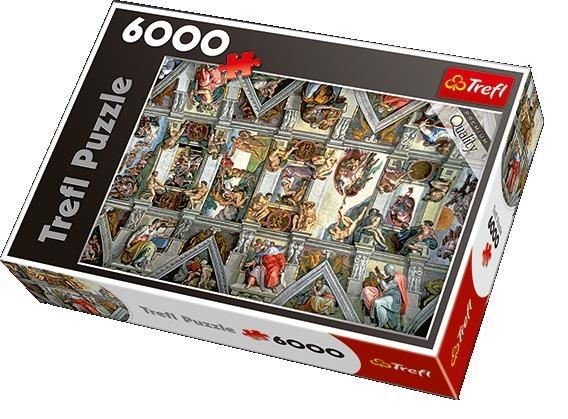 Puzzle 6000 elementów przedstawiające sklepienie Kaplicy Sykstyńskiej. Po ułożeniu powstanie obrazek o wymiarach 136x96 cm. Wysoką jakość, nasycenie kolorów i bezpieczeństwo układania zapewnia wykorzystanie materiałów ekologicznych.