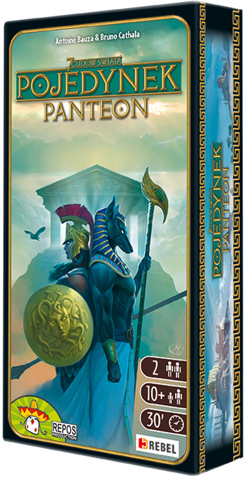 Dodatek Panteon wprowadza antycznych bogów do gry ""7 Cudów Świata: Pojedynek"". Teraz gracze mogą ubiegać się o przychylność bóstw z pięciu różnych kręgów kulturowych i skłonić je wszystkie do roztaczania swojej opieki nad ich miastem. Z pewnością pomoże w tym budowa bogatej świątyni ku czci wybranego patrona lub patronki albo poświęcenie im jednego z dwóch nowych Cudów Świata dostępnych w dodatku.