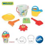 Obowiązkowy zestaw wakacyjny i niezbędnik w każdej piaskownicy. 7-mio elementowy zestaw składa się z kwadratowego, transparentnego wiaderka, dwóch foremek, łopatki, grabek i konewki. Zestaw „akwarium“ jest wyjątkowo atrakcyjny ze względu na transparentne wiaderko przez które dzieci jak w akwarium mogą oglądać kamyki z wodą w środku i inne swoje skarby. Komplet wykonany jest w technologii IML (In Mould Labelling), zapewniającej trwałość grafiki na zabawce. Całość wyprodukowana jest w Polsce, z wysokiej jakości tworzywa sztucznego, odpornego na warunki atmosferyczne.