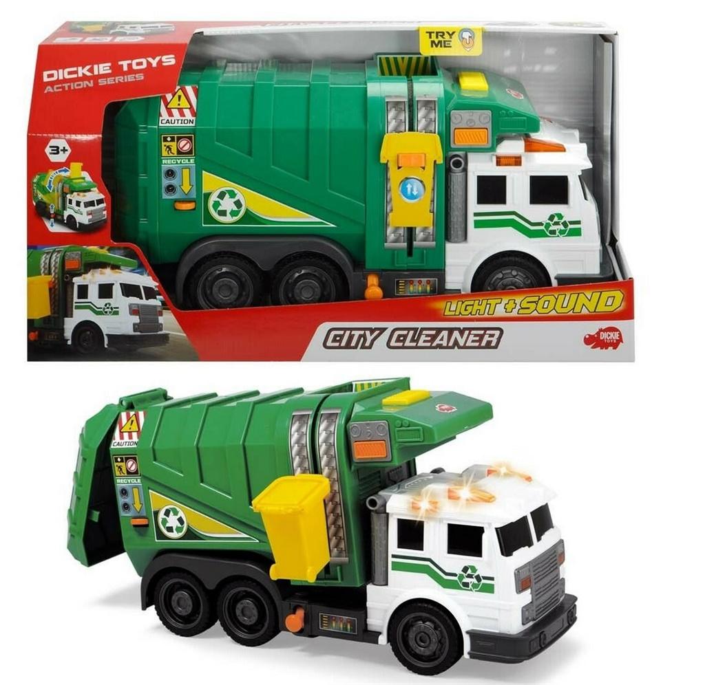 Śmieciarka zielono biała z ruchomymi elementami, światłem oraz dźwiękiem