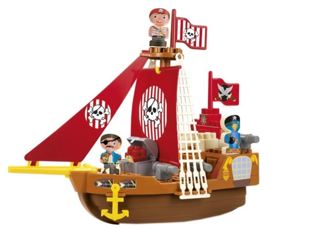 Statek prawdziwych piratów z dwoma żaglami i orlim gniazdem do obserwacji okolicy. Jest też siatka do wspinania się na maszt. Statku pilnuje 2 piratów i papuga. Na pokładzie mają skrzynię ze skarbami i armatki.