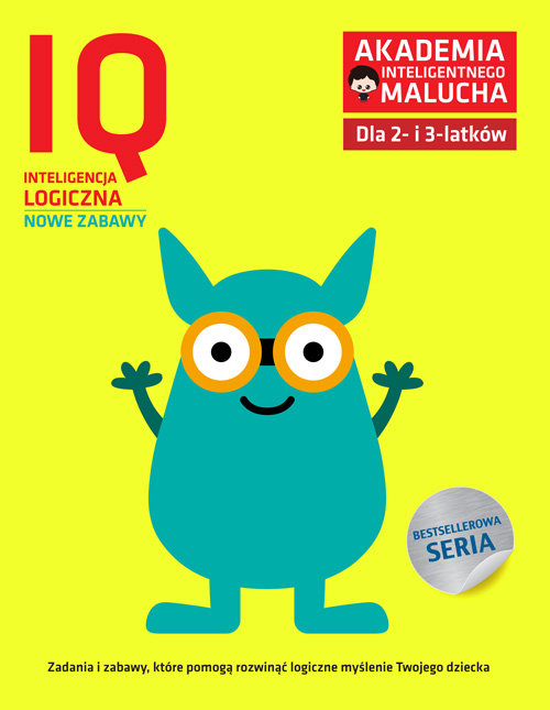 Nowe zabawy dla 2-3 latków! Kontynuacja bestsellerowej serii IQ + EQ+ CQ, wspomagającej rozwój inteligencji Twojego dziecka! • Seria książeczek, która zadba o równomierny rozwój trzech najważniejszych inteligencji Twojego dziecka. • Każdy z tytułów skupia się na rozwoju jednej z kluczowych sprawności – inteligencji emocjonalnej (EQ), kreatywności (CQ) i logicznego myślenia (IQ). • Zawiera porady i wskazówki oraz propozycje zabaw, które przyczyniają się do wzrostu kreatywności, kompetencji emocjonalnych oraz logicznego myślenia. • W znakomity sposób łączy teorię z praktyką, oferując rodzicom i wychowawcom cenna wiedzę o rozwoju dzieci, a maluchom – fantastyczną zabawę. Wiele rodzajów inteligencji. Nie od dziś wiadomo, że inteligencja daje podstawę do przyszłych osiągnięć edukacyjnych dzieci, a w dalszej perspektywie do ich sukcesów w pracy zawodowej. Dlatego też chcąc wspomagać rozwój różnych rodzajów inteligencji Waszego dziecka, należy zapewnić mu odpowiednie warunki dla tego rozwoju i właściwe pomoce wspierające kształtowanie się inteligencji. Współczesne badania pokazują, że nie ma jednego rodzaju inteligencji, a samo pojęcie „inteligencja” nie opisuje człowieka tylko w zakresie aktywności intelektualnej. Inteligencja jest dynamiczna i wielopłaszczyznowa, może być nieustannie rozwijana. Rozwój myślenia i ciekawości Waszego dziecka wiąże się z formowaniem jego postawy wobec nauki i rozwijaniem zainteresowań. Kształtuje się jego stosunek do różnych obowiązków, ale też do ludzi. Ma to ogromny wpływ na udany start w życie szkolne i umiejętność radzenia sobie z obowiązkami.