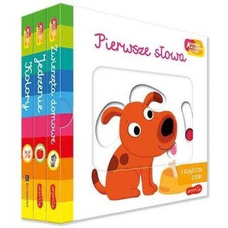 Zestaw zawiera trzy książeczki: ""Zwierzęta domowe"", ""Jedzenie"", ""Kolory"".