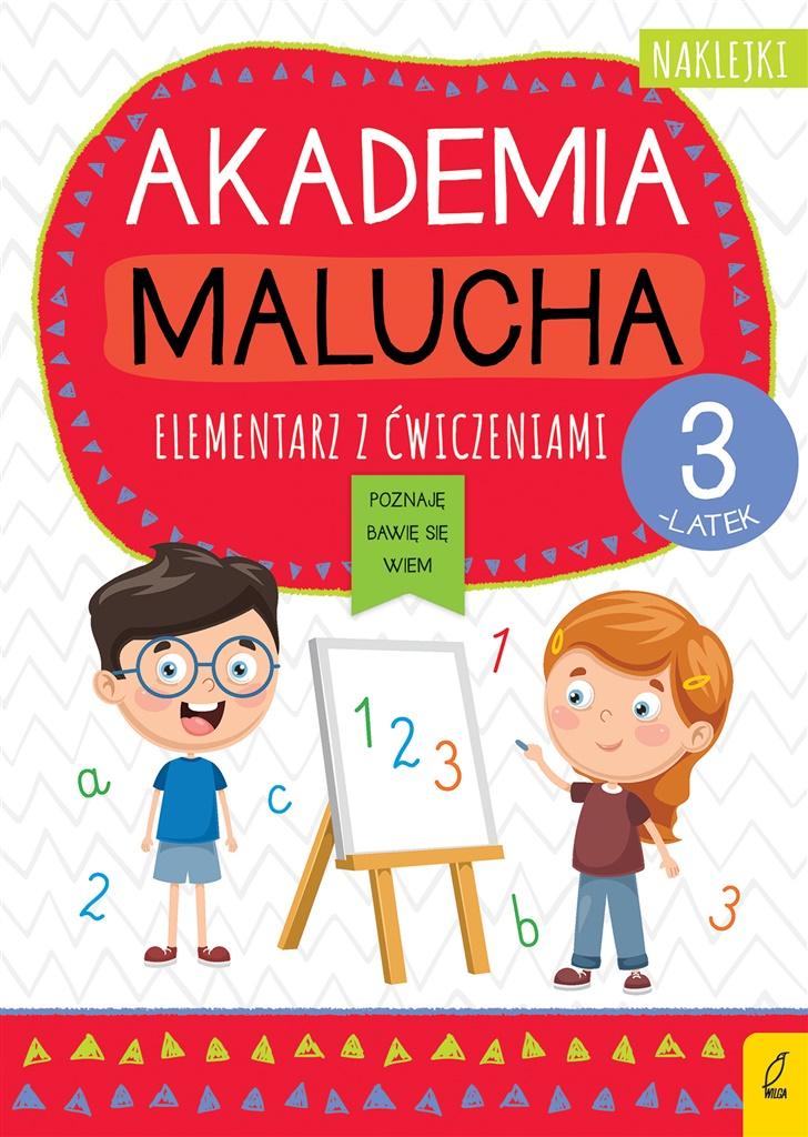 Dzięki tej książce edukacyjnej maluch zdobędzie nowe umiejętności dostosowane do swojego wieku, rozwinie sprawność manualną, zręczność, koncentrację i spostrzegawczość, a także z większą uwagą będzie obserwować świat wokól siebie. Zawarte w ""Akademi malucha"" zadania pomogą mu znaleźć odpowiedzi na wiele ciekawych pytań i rozwijać umiejętności wypowiedzi.