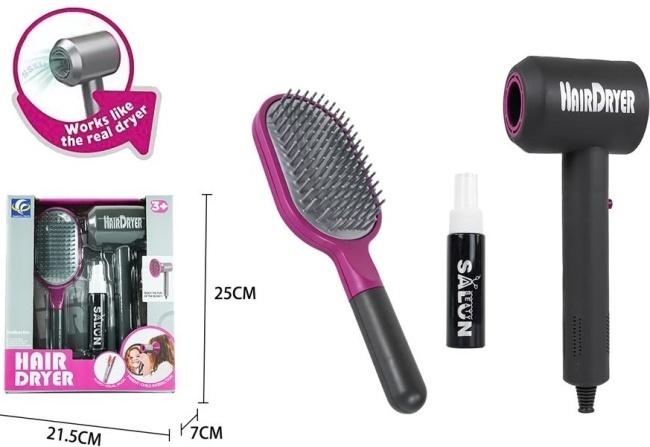 Zostań Małym Stylistą z Zestawem Fryzjerskim! Marzy Ci się, aby Twoje dziecko wcieliło się w rolę fryzjera? Nasz uroczy zestaw fryzjerski to doskonały sposób na rozwijanie wyobraźni i kreatywności poprzez zabawę w salon piękności. Ten kompleksowy zestaw zawiera wszystko, czego mały stylista potrzebuje do tworzenia fantazyjnych fryzur. W skład zestawu wchodzą: Zabawkowa suszarka do włosów: Wygląda jak prawdziwa i co najważniejsze - działa jak prawdziwa! Delikatny podmuch powietrza sprawi, że zabawa będzie jeszcze bardziej realistyczna i wciągająca. Twoje dziecko poczuje się jak w prawdziwym salonie fryzjerskim. Ergonomiczna szczotka do włosów: Idealnie dopasowana do małych rączek, pozwoli na "czesanie" lalek, pluszaków, a nawet włosów rodziców (oczywiście z umiarem!). Jej kształt i rozmiar są bezpieczne i wygodne dla dziecka. Buteleczka "salonowa": Mała buteleczka doda profesjonalizmu każdej zabawie. Można ją napełnić wodą, aby dodatkowo uatrakcyjnić scenariusze zabawy w fryzjera. Zabawka przeznaczona jest dla dzieci powyżej 3 roku życia. Dzięki temu zestawowi Twoje dziecko będzie mogło: Rozwijać swoją wyobraźnię i kreatywność. Ćwiczyć zdolności manualne i koordynację wzrokowo-ruchową. Odgrywać role i uczyć się interakcji społecznych. Spędzać czas na wciągającej i bezpiecznej zabawie. Podaruj swojemu dziecku ten fantastyczny zestaw fryzjerski i pozwól mu odkryć pasję do stylizacji!