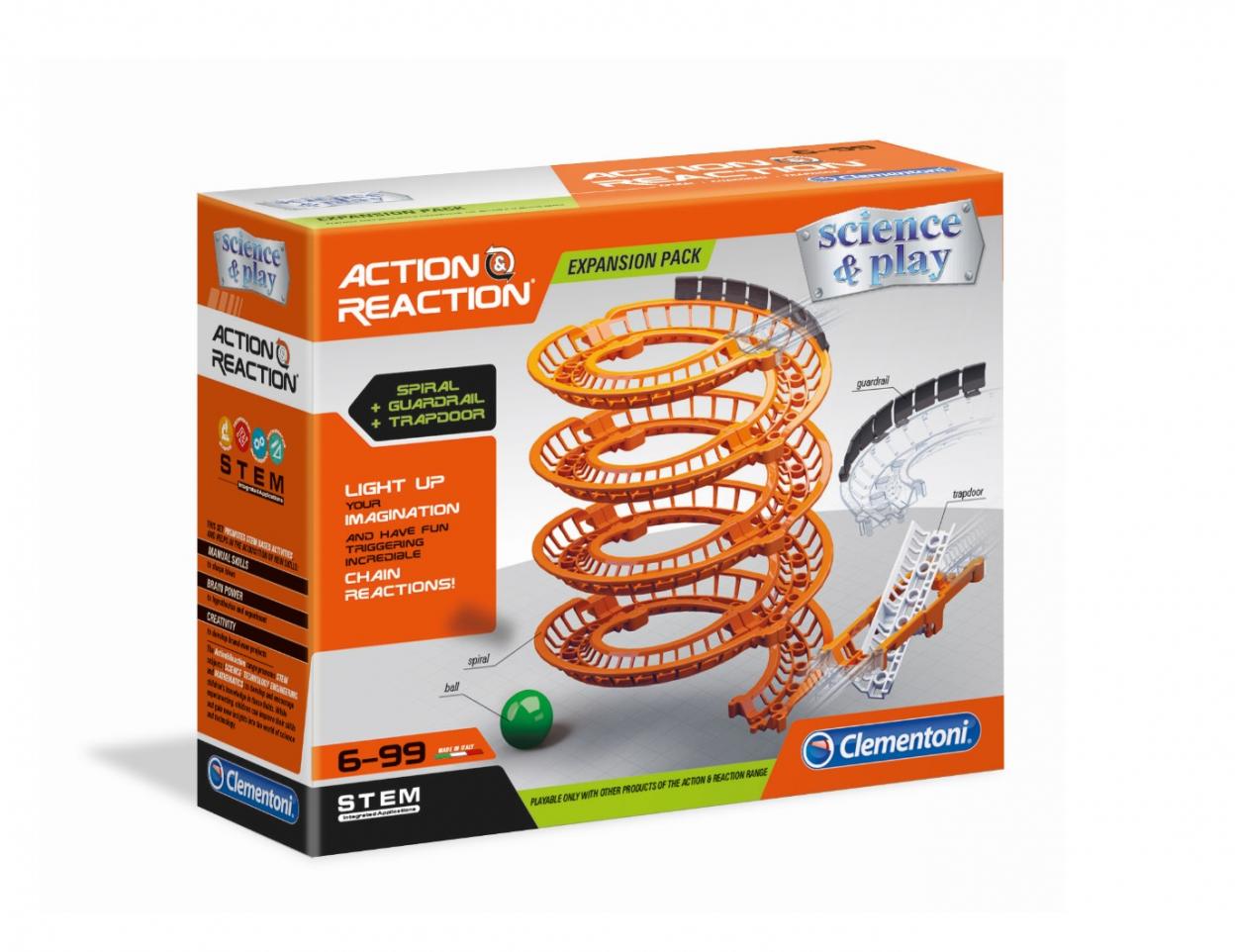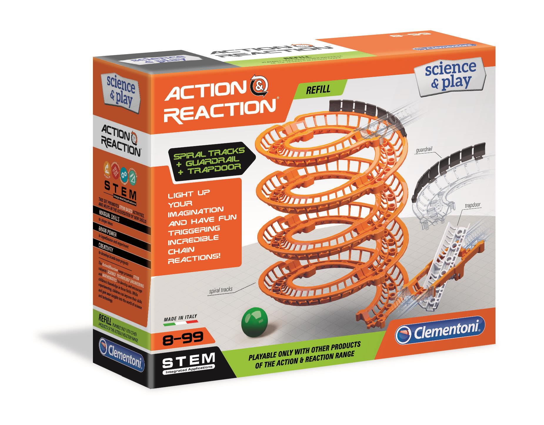 Wskocz w wir zabawy i buduj tory z wykorzystaniem włazów, barierek, spiral i wielu innych akcesoriów! Dzięki temu zestawowi wzbogacisz swoje tory o niesamowite funkcje: możesz umieścić na drodze właz, do którego wpadnie kulka, w wyniku czego zmieni się jej trasa, lub zbudować spiralny tor, który przyprawi Cię o zawrót głowy! Ten zestaw jest kompatybilny ze wszystkimi innymi zestawami z serii Akcja-Reakcja i umożliwia urozmaicanie torów wyjątkowymi elementami. Dla dzieci w wieku od 8 lat
