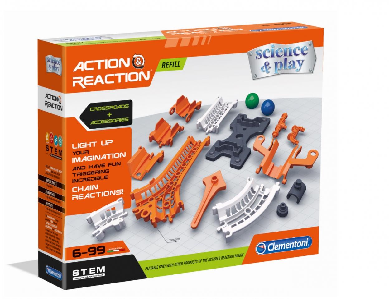 Ten wspaniały zestaw jest kompatybilny ze wszystkimi innymi zestawami z serii Akcja-Reakcja. Dzięki niemu możesz tworzyć jeszcze więcej niesamowitych torów i podejmować się ekscytujących wyzwań! Rozwidlenie umożliwia dzielenie torów, zmianę kierunku poruszania się kulek i zaprzeczanie sile grawitacji! To zestaw doskonały do eksperymentowania z podstawowymi zasadami fizyki w ekscytujący i niezwykle kreatywny sposób! Dla dzieci w wieku od 8 lat