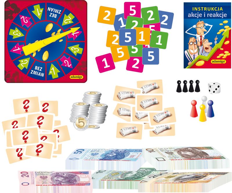 Poczuj się jak prawdziwy giełdowy rekin i zagraj w „Akcje i reakcje”!!! Sam zdecydujesz, w akcje jakich firm będziesz inwestował, a ile pieniędzy przeznaczysz na bezpieczną lokatę. Uważaj! Giełda jest zmienna i nie wszystkie wzrosty i spadki wartości akcji można przewidzieć. Wygra ten z graczy, który będzie trzymał mocno giełdowego byka za rogi i zgromadzi największy majątek.