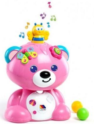 Miś z Molto to zabawki edukacyjne z mnóstwem ciekawych działań i zabawy dla najmłodszych: muzyka, świateła, wesołe dźwięki oraz odkrywanie, kształtów i kolorów. Przez otwierane uszka maluszek wrzuca piłeczki, które wyciąga po otwoerzeniu brzuszka misia. Misiu zawiera 5 puzzli z muzyką i światłem, które znajdują się w brzuszku misia. Zabawka wymaga użycia baterii.