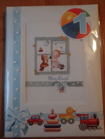 Album na Roczek to elegancka, kolorowa pamiątka wykonana z matowego, wysokiej jakości surowca zdobiona grafiką, złoceniami, brokatem oraz tłoczeniami.  Książeczka pozwala na wpisanie wielu informacji. Daty i miejsca Chrztu Św., tego kto został Ojcem i Matką Chrzestną, wagi dziecka, wzrostu, pierwszych wypowiedzianych słów, tego jaki był tort na imprezie urodzinowej czy kiedy pojawiły się pierwsze ząbki. Jest również miejsce na odrysowanie rączki, stópki i wklejenie zdjęcia.
