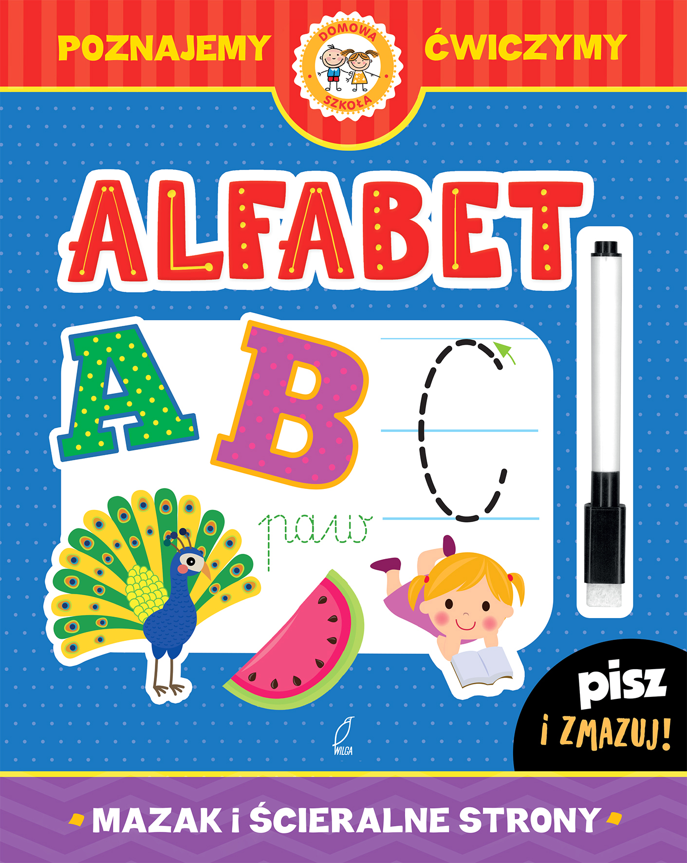 Seria książeczek ze zmywalnymi stronami i pisakiem. Seria, która pomaga w nauce alfabetu, liczb, pisania i liczenia. Dzięki zmywalnemu pisakowi dziecko może ćwiczyć pisanie liter i cyfr wiele razy. Naukę ułatwia pisanie po śladzie a dziecko ćwiczy także zdolności manualne oraz spostrzegawczość i pamięć wzrokową.