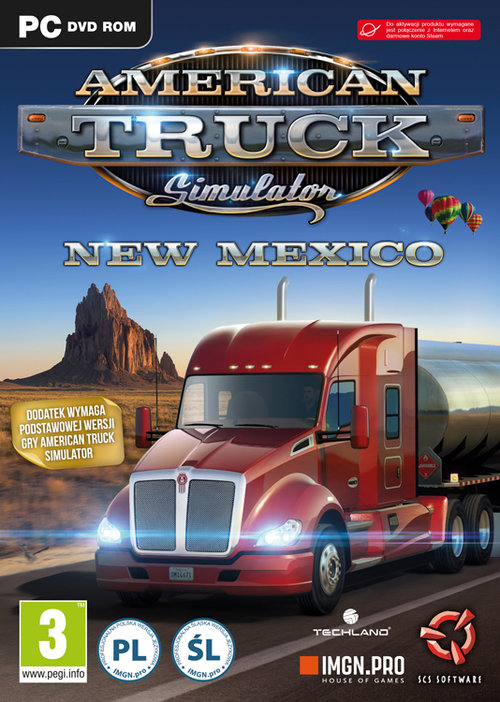 NIE BEZ PRZYCZYNY O NOWYM MEKSYKU MÓWIĄ "KRAINA CUDÓW". ZAPIERAJĄCA DECH W PIERSI SCENERIA SPRAWI, ŻE KAŻDY Z TWOICH KURSÓW BĘDZIE WYJĄTKOWY. Subtelne piękno krajobrazu Nowego Meksyku rozciąga się na cały stan. Podczas kursów odkryjesz niepowtarzalne scenerie przyrody, dwa zlecenia nigdy nie będą takie same. Zurbanizowane tereny, takie jak Albuquerque, postoje w samym sercu pustyni, bujne lasy i pasma górskie. Spędź noc, odpocznij, zatankuj i napraw swoją ciężarówkę na jednym z wielu wyjątkowych postojów samochodów ciężarowych na autostradach w Nowym Meksyku. Cechy gry: 1. Niemal 6,5 tysiąca kilometrów dróg. 2. 14 największych miast, w tym Albuquerque, Santa Fe i Roswell. 3. 11 postojów dla ciężarówek. 4. Złożony, realistyczny system skrzyżowań i węzłów drogowych. 5. Wyjątkowe obiekty, zarówno naturalne, jak i te stworzone ręką człowieka. 6. Osiągnięcia związane z dodatkiem "New Mexico".