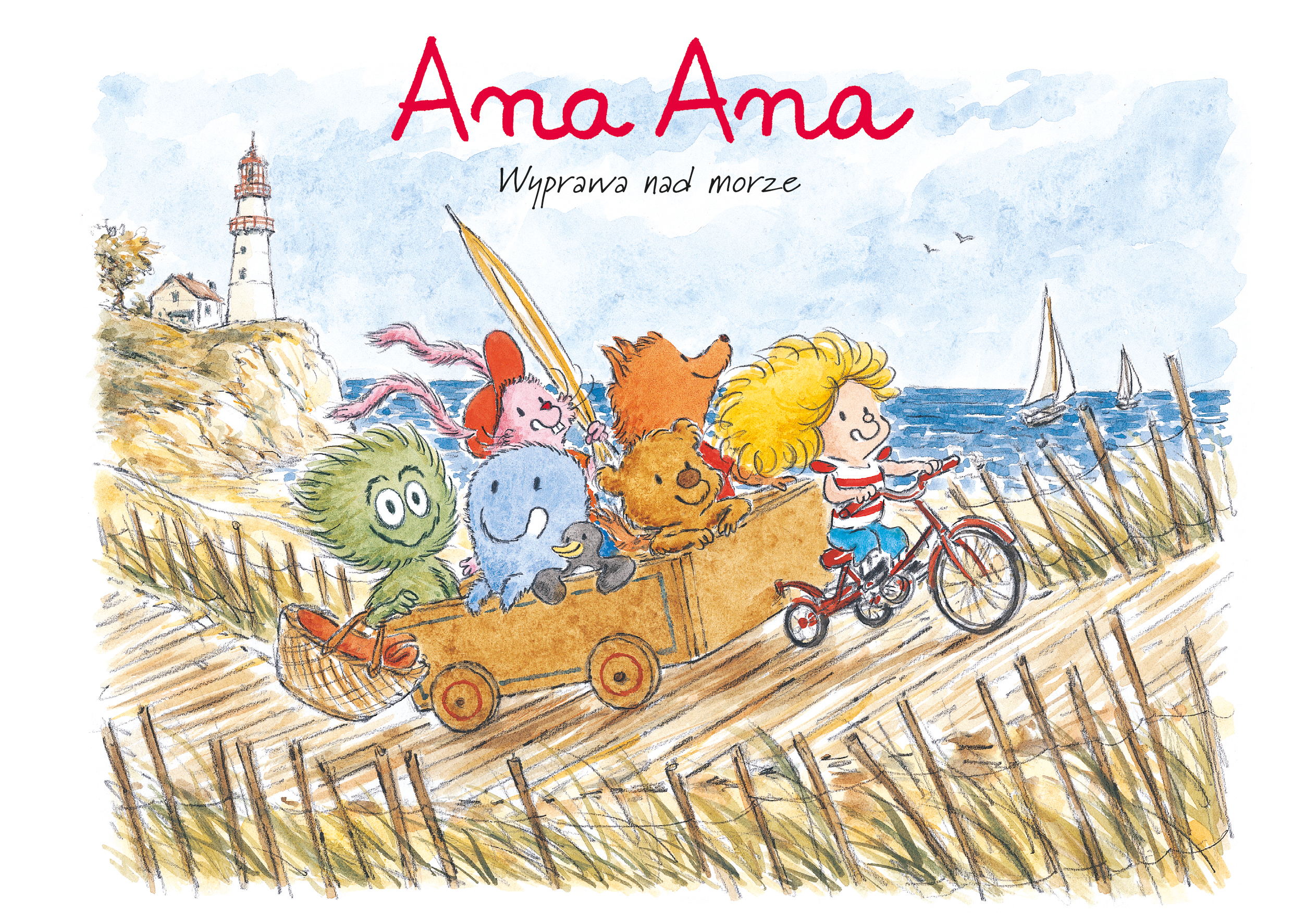 Na głowie burza złotych loków, pod którymi kłębią się tysiące pomysłów... Oto Ana! Jest piękny, ciepły dzień. Ana Ana przyczepiła wózek do roweru i zabrała swoje pluszaki nad morze To będzie przygoda!