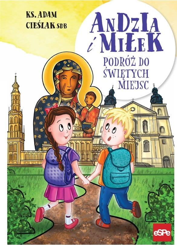Miłka zawsze rozpiera energia. Gdy otwiera oczy i orientuje się, że właśnie rozpoczęła się jego pierwsza wyprawa pociągiem, towarzyszy mu lekki niepokój. Rodzice zostali w domu… Na szczęście tuż obok są dziadkowie oraz rówieśniczka, kuzynka Andzia, która razem z nim rusza w nieznane. Bohaterowie podróżują szlakiem miejsc, które szczególnie zapisały się na duchowej mapie Polski. Razem z dziadkami odkrywają w Łagiewnikach historię świętej siostry Faustyny, maszerują po kalwaryjskich dróżkach i podziwiają dostojne anioły w Licheniu. Spotykają też na swej drodze ziejącego ogniem Smoka Wawelskiego, zaglądają do prawdziwego domku mongolskiego w krakowskich „Wioskach Świata” oraz testują na grunwaldzkich polach kuszę do strzelania. Niechcący udaje im się też zgubić! Czy odnajdą drogę do dziadków i bezpiecznego domu? Andzia i Miłek. Podróż do świętych miejsc to książeczka dla dzieci w wieku wczesnoszkolnym. W ciepły i prosty sposób przedstawia miejsca w Polsce, które mogą pomóc, zarówno dzieciom jak i dorosłym, spotkać się z Jezusem i Maryją. Dla najmłodszych będzie to opowieść o przygodach dwojga kuzynów, a dla dorosłych – interesujący punkt wyjścia do rozmowy z dziećmi o poznawaniu świata i Boga. Ks. Adam „Gabriel” Cieślak SDB – salezjanin, biotechnolog, absolwent Wyższego Seminarium Duchownego Towarzystwa Salezjańskiego w Krakowie oraz Uniwersytetu im. Adama Mickiewicza w Poznaniu. Umysł naukowca, dusza artysty, serce wychowawcy. Zafascynowany twórczością Tolkiena, Lewisa i Lema. Wszystkie zainteresowania stara się wykorzystać w służbie Bogu i młodzieży. Autor wydanych w Wydawnictwie eSPe opowiadań dla dzieci Baśń o płonącej lampie, Kraina przedświtu i O smoku z prawie-Świata, a także dostępnych w internecie opowiastek kolonijnych o Agentce Małek.