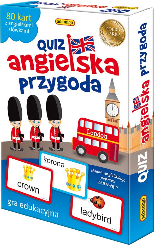 Ta niezwykła wycieczka po Londynie umożliwia podczas świetnej zabawy, utrwalenie angielskiego słownictwa. Gra zawiera aż 80 dwustronnych kart z angielskimi słówkami, na których znajdują się nazwy przedmiotów, zwierząt, kształtów, kolorów i liczb. W środku znajduje się instrukcja, zawierająca opis dwóch gier. Karty można także wykorzystywać podczas samodzielnej nauki angielskich słówek! Gra dla 2-4 graczy, w wieku powyżej lat 5.