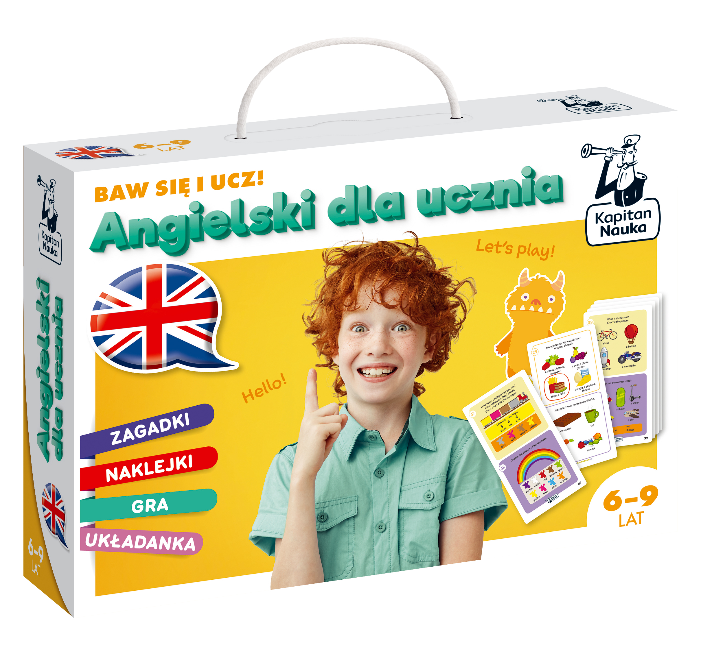 Angielski dla ucznia (6–9 lat) to zestaw pomysłowych i rozwijających zabaw dla młodszych uczniów do szybkiej i efektywnej nauki ponad 100 słów, wyrażeń i zdań. Dzieci zapamiętają angielskie słownictwo dzięki skojarzeniom z kolorowymi obrazkami oraz utrwalą poznane słówka poprzez zagadki, gry, układanki kreatywne i naklejki. W pakiecie znajdują się zagadki obrazkowe, książeczka-harmonijka Monster’s Adventures, materiały do wycięcia w formie gry i układanki kreatywnej oraz naklejki. Zagadki obrazkowe zapewniają aktywną naukę słownictwa związanego z zainteresowaniami dziecka. Łączenie rysunków z podpisami, wyszukiwanie niepasujących elementów czy łączenie przeciwieństw rozwija umiejętność rozumienia poleceń, wprowadza do nauki czytania oraz kształtuje umiejętność myślenia logicznego. Na odwrocie karty znajdują się polskie tłumaczenia poleceń wraz z odpowiedziami. Książeczka-harmonijka Monsters adventures łączy zabawną historyjkę obrazkową z zagadkami logicznymi, oswajając dziecko ze słownictwem związanym z codziennymi czynnościami i podróżowaniem. Materiały do wycięcia w formie gry oraz układanki kreatywnej ułatwiają zapamiętanie słówek związanych z częściami ciała i ubraniami, a także trenują pamięć i koncentrację. Do zestawu dołączone są również naklejki z 48 angielskimi słówkami i obrazkami. Angielski dla ucznia (6–9 lat) to idealny wybór dla rodziców, którzy chcą oswajać dziecko z językiem obcym podczas codziennych zajęć oraz dla nauczycieli prowadzących zajęcia w pierwszych klasach szkoły podstawowej. Różnorodne materiały świetnie sprawdzą się podczas nauki indywidualnej, w parach lub w gronie kilkorga dzieci. W serii: • Angielski dla przedszkolaka (3–5 lat)