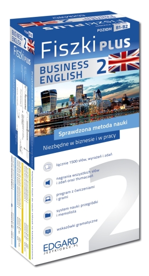 600 fiszek + program i nagrania do pobrania + kolorowe przegródki + etuiFiszki PLUS Business English 2 (B1-B2) to pakiet będący częścią rozbudowanego systemu nauki, dzięki któremu szybko i skutecznie nauczysz się słów i wyrażeń niezbędnych w biznesie i w pracy. Każdy zestaw Fiszek PLUS to starannie przygotowany materiał, wysokiej jakości nagrania wymowy wraz z programem komputerowym, memolistą i grami językowymi.Z Fiszkami PLUS nie tylko zapamiętujesz słówka, lecz także poznajesz słownictwo w kontekście, uczysz się nieregularnych form oraz popularnych zwrotów językowych. Od dziś nauka języka stanie się przyjemnością!- Ucz się 1500 słów, wyrażeń i zdań poznaj użycie gotowych wzorców komunikacyjnych, utrwal reguły gramatyczne.- Poznaj prawidłową wymowę. Słuchaj nagrań wszystkich słówek i zdań oraz tłumaczeń- Utrwalaj materiał z ćwiczeniami i grami językowymi dostępnymi w programie (do pobrania)- Ucz się skutecznie dzięki systemowi kolorowych przegródek. Sprawdź na memoliście, które słówka już znasz!- Twórz własne playlisty nagrań wymowy i ucz się mobilnie w drodze do pracy lub szkoły!