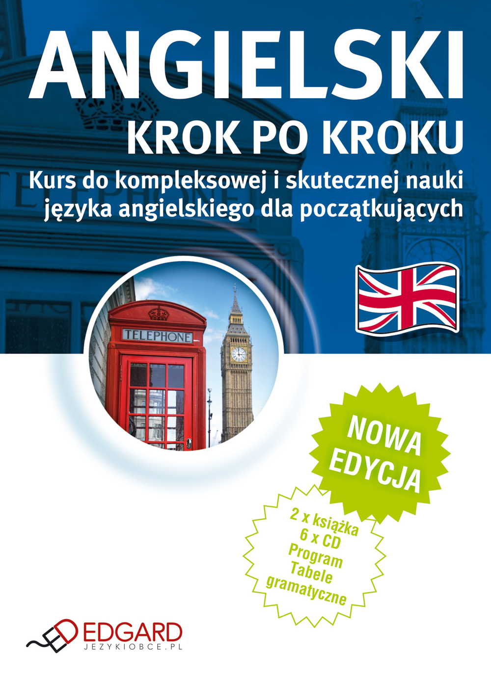 ANGIELSKI Krok po kroku NOWA EDYCJA: - 6 godzin wysokiej jakości nagrań na 5 płytach CD - tylko rodowici Brytyjczycy,- 3000 niezbędnych słów i zwrotów,- współczesne dialogi i praktyczne wyrażenia z tłumaczeniami,- program multimedialny,- przystępnie objaśniona gramatyka,- ćwiczenia z odpowiedziami,- tabele gramatyczne- różnorodne ciekawostki. ANGIELSKI Krok po kroku NOWA EDYCJA to kurs do kompleksowej nauki języka angielskiego od poziomu początkującego do średnio zaawansowanego (A1-B1). Polecany jest osobom zaczynającym naukę oraz wszystkim, którzy chcą doskonalić językowe umiejętności, poszerzyć zasób słownictwa oraz poprawić wymowę.Kurs uczy 3000 słów i zwrotów niezbędnych na co dzień, przystępnie objaśnia i utrwala najważniejsze zasady gramatyczne oraz uczy prowadzenia swobodnych rozmów z obcokrajowcami i rozumienia ze słuchu. Różnorodne ciekawostki urozmaicają naukę i zapoznają z obyczajami oraz kulturą Wielkiej Brytanii. Książki (łącznie 256 str.) zawierają zestawy słówek, ciekawe dialogi, interesujące ćwiczenia utrwalające, 30 lekcji tematycznych, dodatkowe sekcje dla ambitnych, pełny zapis nagrań wraz z tłumaczeniami na język polski, ciekawostki, np. o American English, popularnych miejscach na zakupy, five o'clock, narodowych sportach - polo i krykiecie czy o kuchni brytyjskiej. Część gramatyczna przystępnie wyjaśnia najważniejsze zagadnienia, m.in. szyk zdania, czasowniki modalne, zasady tworzenia pytań, zaimki, stopniowanie przymiotników i czasy. Dołączone do zestawu tabele gramatyczne zawierają najważniejsze czasowniki nieregularne oraz czasy gramatyczne.Wysokiej jakości nagrania profesjonalnych lektorów (6 godzin, 5 płyt CD) pozwalają osłuchać się z językiem, poznać jego melodię oraz prawidłową wymowę. Słówka, zwroty oraz dialogi zostały udźwiękowione przez profesjonalnych lektorów. Specjalnie przygotowana szósta płyta zawiera wszystkie nagrania w formacie MP3.Program multimedialny uczy nowych słówek i utrwala zdobytą wiedzę. Zawiera interaktywne ćwiczenia, gry, testy, doskonali umiejętność pisania, rozumienia ze słuchu oraz umożliwia samodzielny i skuteczny trening prawidłowej angielskiej wymowy.Angielski Krok po kroku to unikalna i bardzo skuteczna forma poznawania języka - łączy naukę z podręcznikiem, słuchanie nagrań na płytach audio lub mp3 z pracą z programem komputerowym. Pakiet polecamy do samodzielnej nauki w podróży, w domu, w samochodzie.
