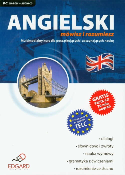 Angielski - Mówisz i rozumiesz to multimedialny kurs dla osób początkujących i zaczynających naukę oraz tych, które chciałyby szybko przypomnieć sobie podstawy języka angielskiego. Program skutecznie uczy 1500 najważniejszych słów i zwrotów, krok po kroku objaśnia podstawy i tłumaczy najważniejsze zagadnienia gramatyczne. Specjalnie opracowane ćwiczenia oraz graficzny analizator wymowy doskonalą mówienie i kształcą rozumienie ze słuchu. Szybko zaczniesz mówić i rozumieć cudzoziemców! Nowa edycja kursu została wzbogacona o płytę audio (ok. 70 min. nagrań), która uczy zwrotów niezbędnych do swobodnego porozumiewania się. Każde wyrażenie zostało zilustrowane zdaniem lub dialogiem pokazującym ich użycie w kontekście. W serii Mówisz i rozumiesz: Niemiecki, Włoski, Hiszpański, Francuski, Rosyjski. Prezentacja programu Mówisz i rozumiesz Angielski - Mówisz i rozumiesz to: * 750 ćwiczeń w 30 różnych typach, * praktyczne rozmówki, * gramatyka z ćwiczeniami, * w pełni polski interfejs, * nagrania wyłącznie native speakerów, * 1500 słówek i zwrotów, * tłumaczenia na polski, * nauka wymowy i rozumienia ze słuchu, * słownik 5000 haseł, * + płyta audio z nagraniami - GRATIS.