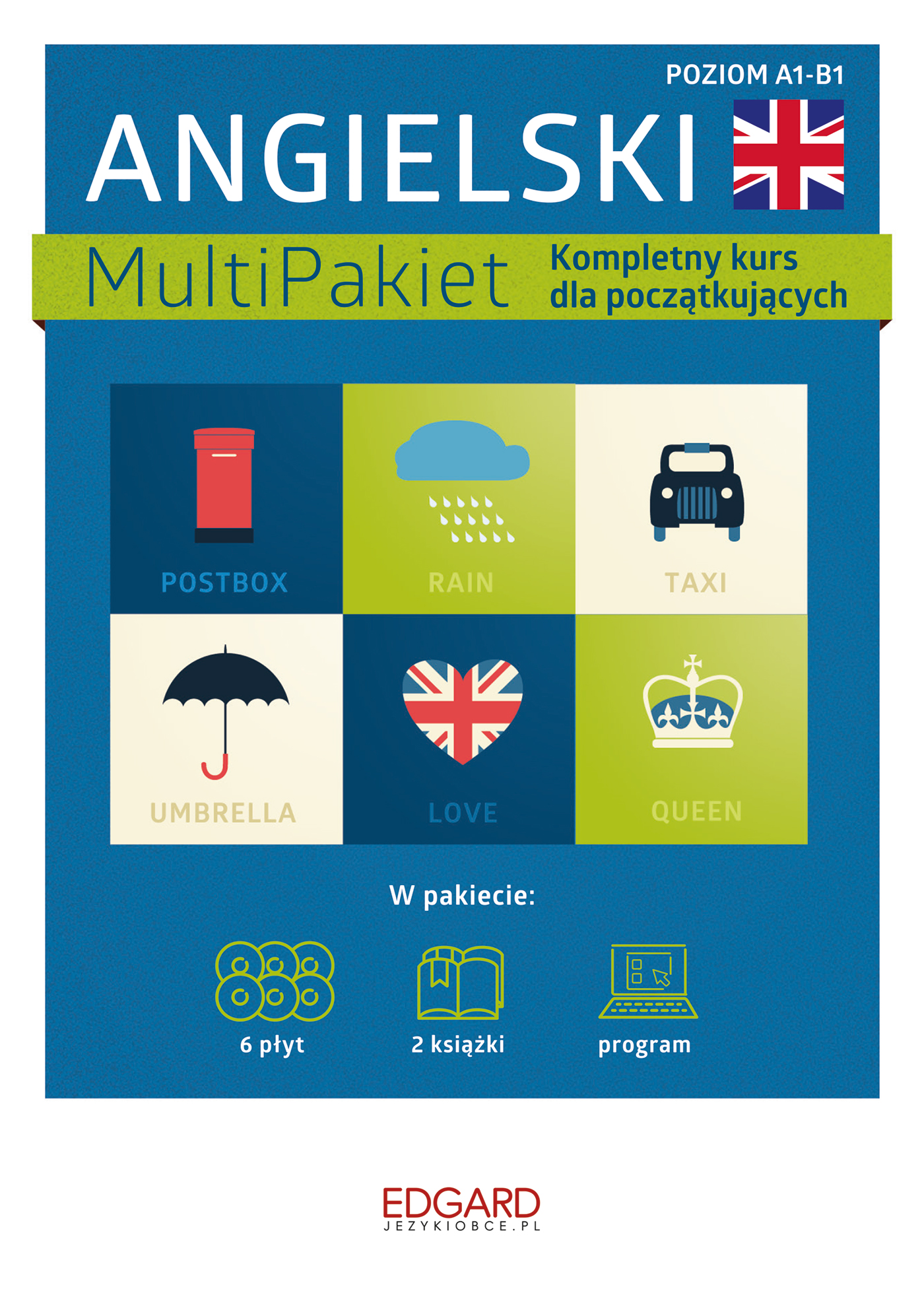 Angielski MultiPakiet to kompleksowy kurs języka angielskiego od poziomu początkującego do średnio zaawansowanego (A1-B1) dla osób rozpoczynających naukę lub podejmujących ją po przerwie. Zestaw pozwala poznać 2250 najważniejszych słówek i zwrotów przydatnych na co dzień, a także opanować zagadnienia gramatyczne niezbędne do swobodnej komunikacji – samodzielnie zapytasz o drogę, zrobisz zakupy, zarezerwujesz pokój i bez problemu dogadasz się w każdej sytuacji! Różnorodne ciekawostki zapoznają cię z obyczajami oraz kulturą Wielkiej Brytanii. Nagrania zamieszczone na płytach CD w wykonaniu profesjonalnych lektorów rozwijają umiejętność rozumienia ze słuchu i umożliwiają naukę prawidłowej wymowy. Program komputerowy, na który składają się ćwiczenia, gry i testy językowe, pomoże sprawdzić wiedzę i sprawi, że utrwalanie poznanego materiału stanie się skuteczne i przyjemne. 2 książki: - gramatyka w pigułce - praktyczne dialogi i ciekawostki - różnorodne ćwiczenia z kluczem odpowiedzi - 2250 najważniejszych wyrażeń 6 płyt CD: - ponad 4,5 godziny nagrań native speakerów - nagrania z tłumaczeniami - płyty w dwóch formatach (audio i mp3) Program komputerowy: - ćwiczenia interaktywne - gry językowe - testy podsumowujące Słuchaj i ucz się w drodze do pracy, szkoły, na siłowni, w samochodzie!