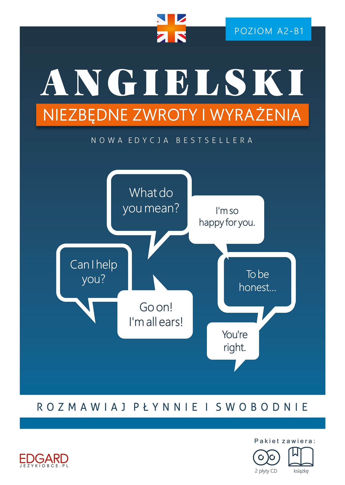 Angielski Niezbędne zwroty i wyrażenia to nowoczesny kurs przeznaczony dla osób znających język angielski na poziomie początkującym i średnio zaawansowanym (A2-B1). Uczy ponad 750 zwrotów i wyrażeń niezbędnych do swobodnego porozumiewania się. Wszystkie wyrażenia zilustrowano zdaniem lub krótkim dialogiem pokazującym ich użycie w kontekście. Po nauce z kursem kupisz bilet, zapytasz o drogę, zrobisz zakupy i umówisz się na spotkanie. W skład kursu wchodzą: książka oraz dwie płyty audio z nagraniami, by móc uczyć się w każdej wolnej chwili i w dowolnym miejscu. Książka zawiera dialogi, dodatkowe słownictwo, 50 różnorodnych ćwiczeń z odpowiedziami do każdej lekcji, zapis nagrań, testy na znajomość słownictwa i zagadnień gramatycznych oraz słowniczek najważniejszych słówek. Wysokiej jakości nagrania (92 minuty) w wykonaniu profesjonalnych lektorów pozwalają osłuchać się z językiem, poznać jego melodię oraz prawidłową wymowę. Uczysz się słówek oraz rozumienia ze słuchu bez konieczności zaglądania do książki!