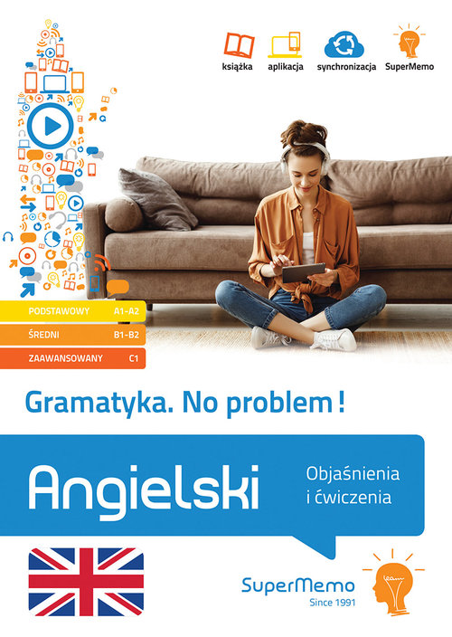 Naucz się gramatyki angielskiej na poziomie A1-C1, aby poprawnie wypowiadać się w tym języku w dowolnej sytuacji! Gramatyka. No problem! Angielski zapewni Ci najlepsze wsparcie dla intensywnej i skutecznej nauki: poznasz najważniejsze zagadnienia gramatyczne i zapamiętasz je na zawsze dzięki metodzie inteligentnych powtórek SuperMemo. Do Twojej dyspozycji oddajemy zawierający 210 stron podręcznik do nauki gramatyki z treścią wyselekcjonowaną z kursu Angielski. No problem!, w którym zostały przedstawione najistotniejsze tematy, przykłady zastosowania teorii w praktyce, ćwiczenia o rosnącym poziomie trudności wraz z odpowiedziami oraz tabele z czasownikami nieregularnymi. Podręcznik uzupełniają dwa kursy multimedialne: Gramatyka angielska. No problem! (do nauki treści z podręcznika) oraz Extreme English: Grammar (stanowiący zbiór dodatkowych ćwiczeń). W kursach multimedialnych znajdziesz prawie 4 700 różnorodnych ćwiczeń obejmujących wszystkie ważne tematy gramatyczne od poziomu podstawowego do zaawansowanego i praktyczne zastosowanie reguł gramatycznych, między innymi w oparciu o przykłady typowych zdań. Materiał gramatyczny obejmuje: - wskazówki dotyczące poprawnej wymowy - odmianę czasowników: to be, to have - rodzajniki - dopełniacz saksoński - liczebniki główne oraz liczebniki porządkowe - zaimki osobowe, dzierżawcze, zwrotne - przymiotniki i przysłówki - czasy: Present Simple, Present Continuous, Past Simple, Past Continuous, Present Perfect, Past Perfect, Present Perfect Continuous, Future Continuous - formy przyszłe (np. to be going to, will) - czasowniki modalne - czasowniki nieregularne - konstrukcję to be able to - stronę bierną - wyrażenia i czasowniki: would rather, to be to, I wish - mowę zależną - następstwo czasów - zdania warunkowe i czasowe. Podstawowe typy ćwiczeń: - różnorodne testy wyboru, wymagające wybrania prawidłowej odpowiedzi spośród kilku podanych - uzupełnianie zdań o brakujące wyrazy lub wyrażenia - przekształcanie zdań - dopasowywanie podanych elementów do luk w tekście - przenoszenie elementów na stronie we właściwe miejsca. Kupując książkę, otrzymujesz kod dostępu do jej rozszerzeń multimedialnych w SuperMemo.com, w postaci ćwiczeń wspieranych oryginalną metodą inteligentnych powtórek SuperMemo, w serwisie i aplikacji SuperMemo. Jednocześnie zwracamy uwagę, że zawartość podręcznika może odbiegać od materiału kursu w SuperMemo.com – w kursie mogą wystąpić dodatkowe/inne zadania lub ćwiczenia, których nie ma w książce. Niezbędne wymagania dotyczące korzystania z dodatków multimedialnych znajdują na stronie SuperMemo.apps. SuperMemo.com to między innymi: - indywidualny dostęp do platformy internetowej i aplikacji (Windows, Android, iOS), online i offline - synchronizacja postępów nauki między Twoimi urządzeniami - oparta o badania naukowe, wielokrotnie nagradzana metoda SuperMemo, pozwalająca zapamiętywać tysiące słów z blisko 100% skutecznością.