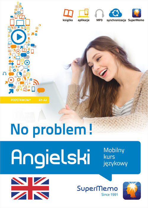 Naucz się angielskiego na poziomie podstawowym (A1-A2), aby swobodnie porozumiewać się w tym języku w prostych sytuacjach życiowych. Angielski. No problem! Mobilny kurs językowy zapewni Ci najlepsze wsparcie dla intensywnej i skutecznej nauki: poznasz najważniejsze słowa oraz struktury gramatyczne dotyczące życia codziennego i zapamiętasz je na zawsze dzięki metodzie inteligentnych powtórek SuperMemo. Do Twojej dyspozycji oddajemy podręcznik do nauki słownictwa i gramatyki, zawierający dialogi, teksty, komentarze, ćwiczenia i słownik, uzupełniony o: + kurs multimedialny, zawierający prezentacje nowego materiału, 1100 nowych słów i wyrażeń, jak również bogaty zestaw różnorodnych ćwiczeń interaktywnych – a wszystko to z nagraniami wykonanymi przez rodowitych lektorów brytyjskich, dostępny w aplikacjach SuperMemo.com dla systemów Android, iOS oraz Windows PC, + nagrania MP3, ponad 2 godziny nagrań w wykonaniu brytyjskich lektorów, do osłuchiwania się ze słownictwem i wymową, np. podczas spaceru, jazdy samochodem lub uprawiania sportu.* SuperMemo.com to między innymi: + oparta o badania naukowe, wielokrotnie nagradzana metoda SuperMemo, pozwalająca zapamiętywać tysiące słów z blisko 100% skutecznością + bogaty słownik pozwalający wyszukiwać i dodawać nowe słowa do nauki + dostęp do wielu kursów językowych + możliwość tworzenia własnych notatek personalizujących treść kursu + możliwość nauki online oraz w aplikacjach przygotowanych na: komputer, tablet oraz smartfon. Uczysz się, jak i gdzie chcesz. Zawsze logujesz się na jedno konto użytkownika, wspólne dla serwisu online oraz programu i aplikacji mobilnych SuperMemo.com, dzięki czemu Twoje postępy w nauce są wszędzie identyczne! * Kupując książkę, otrzymujesz kod dostępu do jej rozszerzeń multimedialnych. Wymagania sprzętowe*: PC: Windows® 7 SP1 PL/EN, Windows® 8 PL/EN, Windows® 10 PL/EN, 2 GB RAM, napęd CD-ROM, ekran 1024 x 768, 250 MB miejsca na dysku, .NET Framework v4.6. Do pobrania kursu i jego aktywacji wymagane jest połączenie z Internetem. Android: smartfon lub tablet z systemem operacyjnym Android 4.1 lub nowszym (aplikacja do pobrania w sklepie Google Play). iOS: iPhone/iPad z systemem operacyjnym iOS 8 lub nowszym (aplikacja do pobrania w sklepie App Store). *Stan na dzień 2016-10-01. Aktualne wymagania dostępne są na stronie supermemo.pl. Instalacja programu i pierwsze uruchomienie programu Podczas instalacji sprawdzana jest wersja dostępnego środowiska .NET Framework. W przypadku jego braku lub wykrycia starszej wersji automatycznie proponowana jest instalacja nowszej wersji. Po zainstalowaniu i uruchomieniu aplikacji SuperMemo.com należy utworzyć nowe konto i zalogować się. Podczas tego procesu niezbędne będzie potwierdzenie adresu e-mail, podanego podczas rejestracji, poprzez kliknięcie linku dostarczonego w mailu wysłanym przez SuperMemo.com na ten adres. Po zalogowaniu się na swoje konto należy wykorzystać kod dostępowy, zawarty w pudełku, klikając w opcję „Zrealizuj kod”. Po pozytywnej weryfikacji kodu na liście kursów użytkownika pojawią się kursy do pobrania. Po pobraniu kursu można rozpocząć naukę. Po aktywacji dostępu do kursu można również pobrać kursy na aplikacje mobilne. www.SuperMemo.com Istnieje również możliwość korzystania z kursu bezpośrednio w wersji serwisu dostępnej online. Wystarczy wejść na stronę www.SuperMemo.com, założyć konto i aktywować dostęp do kursu, wybierając z menu opcję „Zrealizuj kod” i wpisując w pole kod zawarty w pudełku. Po aktywacji dostępu do kursu można również pobrać kurs na aplikacje mobilne.