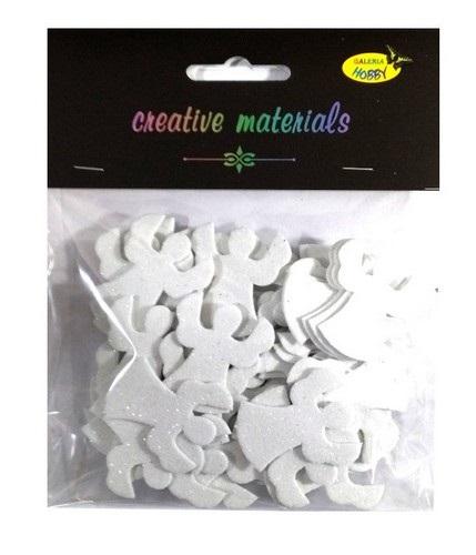 Opakowanie Anioły z pianki brokatowej białe ok 50szt