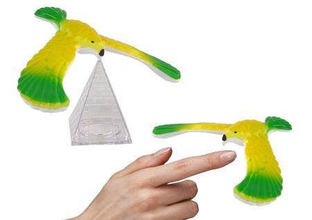 Antygrawitacyjny Ptak Balansujący Zielony Zabawka Balansujący model ptaka to zabawka dla dzieci oraz ozdoba biurka lub półki w Twoim pokoju. Balansujący model orła to mała edukacyjna zabawka ucząca zasad fizyki. Wzbudzi zainteresowanie dziecka nauką oraz zachęci malucha do odkrywania nowych rzeczy. Świetnie sprawdzi się podczas omawiania zagadnień z równowagą i środkiem ciężkości. Orzeł ma kolor zielony, jego środek ciężkości znajduje się na dnie dzioba, a szeroko rozstawione skrzydła utrzymują równowagę i balans. W zestawie mała przezroczysta piramidka, która służy jako podstawa. Możesz spróbować czy ptaszek nie upadnie, kładąc go na czubku palca, sprawdź, jak będzie się zachowywać! Wymiary zabawki: 13 cm x 10 cm x 2 cm piramidka: 4 cm x 4 cm x 6 cm Wymiary opakowania: 14 cm x 14 cm x 5 cm Produkt mały, lekki, nie zajmuje dużo miejsca, łatwy do zabrania. Doskonały jako prezent dla dziecka, wysoka jakość wykonania. Do produkcji użyto bezpiecznych, nietoksycznych materiałów. Zgodne z normą EN71 i certyfikatem CE. Przeznaczony dla dzieci powyżej 3 roku życia.