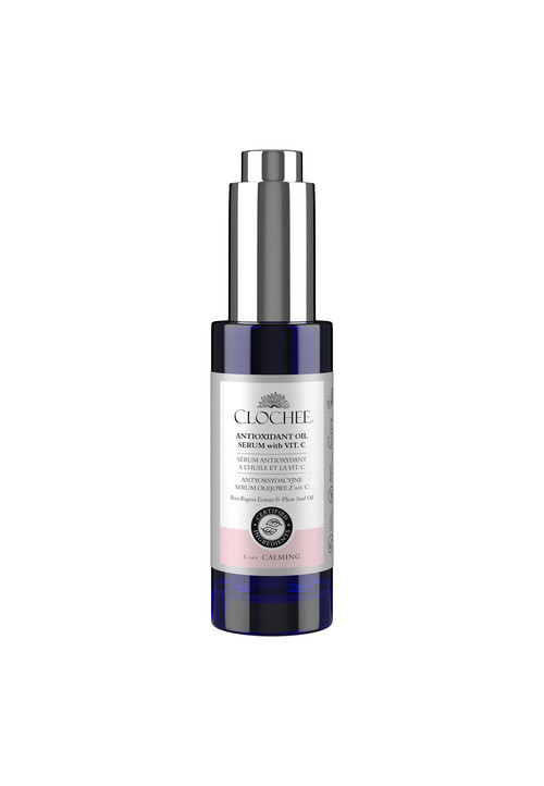 Poprawia koloryt i rozświetla skórę. Wygładza, utrzymuje elastyczność oraz zmniejsza wrażliwość na działanie czynników zewnętrznych. Wycisza skórę naczyniową i nadwrażliwą. Antyoksydacyjne serum olejowe z wit. C to odżywcza forma pielęgnacji aktywnej. Doskonale sprawdza się do skóry suchej, potrzebującej pobudzenia procesów regeneracyjnych. Serum dostarcza skórze NNKT, czyli Niezbędne Nienasycone Kwasy Tłuszczowe, niezbędne do wzmocnienia bariery ochronnej skóry. Olejowa konsystencja serum sprawia, że jest to idealny kosmetyk do przeprowadzenia automasażu twarzy podczas jego aplikacji. Składniki Helianthus Annuus Seed Oil, Prunus Amygdalus Dulcis Oil, Simmondsia Chinensis Seed Oil, Rosa Rugosa Flower Extract, Vitis Vinifera Seed Oil, Tocopherol, Prunus Domestica Seed Oil, Parfum. 97% natural origin of total