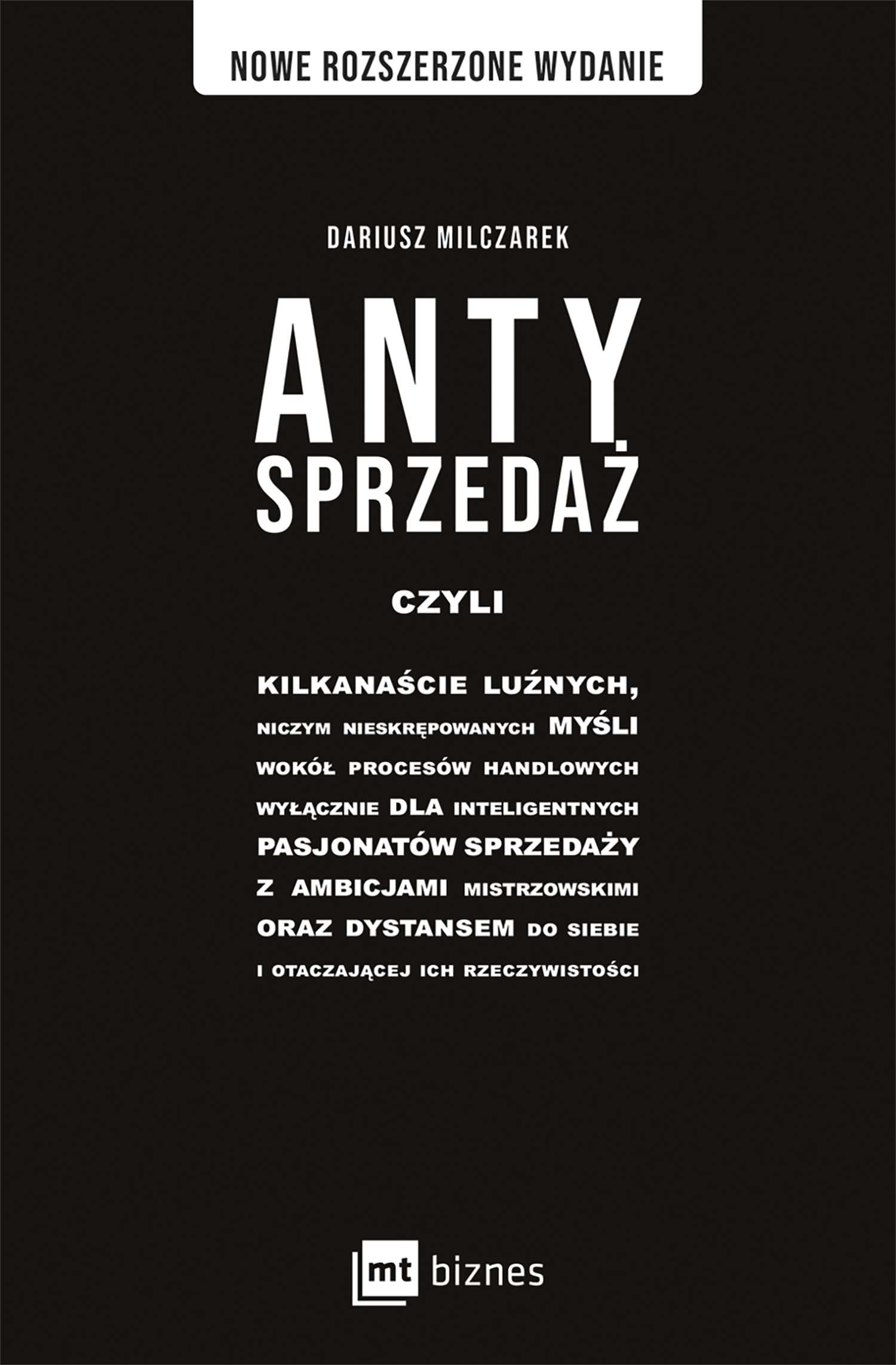 PRZYPOMNIJ SOBIE WSZYSTKO, CO WIESZ O SPRZEDAŻY A TERAZ… ZAPOMNIJ O TYM Czy zastanawiałeś/-aś się kiedykolwiek nad tym, dlaczego sprzedaż bywa tak bardzo trudna, mozolna i nierzadko frustrująca? Jeśli do dziś nie znalazłeś/-aś satysfakcjonującej cię odpowiedzi, to prawdopodobnie ta publikacja jest napisana właśnie dla ciebie. Ta książka, drogi czytelniku, jest w takim samym stopniu herezją, co inspiracją. Użytecznym poradnikiem i jednocześnie cyniczną rozprawką filozoficzną. O sprzedaży, życiu, lękach, kłamstwach i odwadze. Wciągnie cię praktycznie od samego początku… potem cię przeżuje… i ostatecznie odmieni. ZARYZYKUJESZ? CZY ODPUSZCZASZ? Dariusz Milczarek - człowiek wielu profesji i pasji – sprzedawca, konsultant, nauczyciel, menedżer, przedsiębiorca, aktor i mówca motywacyjny. Jeden z pionierów i współtwórców polskiego rynku doradztwa i edukacji biznesowej. Od siedemnastu lat propagator i entuzjasta Systemu Sprzedaży Sandlera. Nietuzinkowa osobowość, niekwestionowany autorytet i mentor dla wielu handlowców oraz menedżerów.