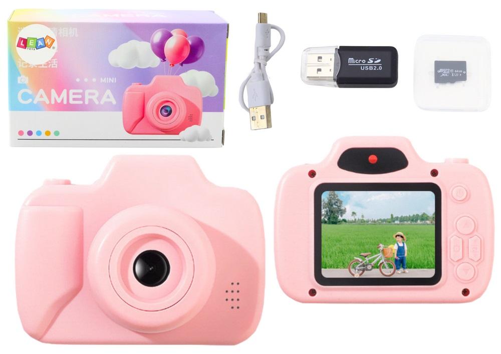 Aparat Dla Dzieci Zdjęcia Nagrywanie Gry Karta Pamięci 64GB Różowy Uroczy aparat dziecięcy w kolorze różowym. Ten aparat nie tylko zachwyca swoim kolorowym wyglądem, ale także oferuje szereg funkcji, które sprawią, że każde zdjęcie i film będą pełne radości i kreatywności. Aparat umożliwia robienie realistycznych zdjęć i nagrywanie filmów, dzięki czemu każde ważne chwile mogą być uwiecznione. W zestawie znajduje się karta micro SD o pojemności 64 GB, co zapewnia mnóstwo miejsca na przechowywanie zdjęć i filmów. Aby jeszcze bardziej ułatwić przenoszenie plików, do aparatu dołączony jest adapter, który pozwala na bezproblemowe przesyłanie zdjęć i nagrań na komputer. Aparat wyposażony jest w 5 wbudowanych gier, które zapewnią rozrywkę w każdej chwili. Dzięki tym grom, aparat staje się nie tylko narzędziem do robienia zdjęć, ale także źródłem zabawy, które umili czas spędzany w podróży czy podczas przerw. Do zestawu dołączone są naklejki, które pozwalają dziecku na kreatywną personalizację swojego urządzenia. Teraz każde dziecko może stworzyć swój własny, niepowtarzalny aparat, który odzwierciedla jego indywidualność i styl. Aparat został wyposażony w sznurek, dzięki któremu dziecko może zawiesić go na szyi. To praktyczne rozwiązanie pozwala mieć aparat zawsze pod ręką i zapewnia wygodę podczas robienia zdjęć. Do zestawu dołączony jest kabel ładujący, który umożliwia łatwe ładowanie aparatu, zapewniając, że będzie zawsze gotowy do użycia. Ten aparat dziecięcy w kolorze różowym to doskonały prezent, który łączy funkcjonalność aparatu fotograficznego z elementami zabawy, personalizacji i praktyczności. Idealny dla małych odkrywców, którzy pragną uchwycić swoje ulubione chwile i cieszyć się kreatywną zabawą. Wymiary aparatu: 8,5cm x 6,5cm x 4cm Wymiary opakowania: 14cm x 8,5cm x 5,5cm Posiada certyfikat CE, ponadto jest zgodny z normą EN71. Przeznaczony dla dzieci powyżej 3 roku życia.