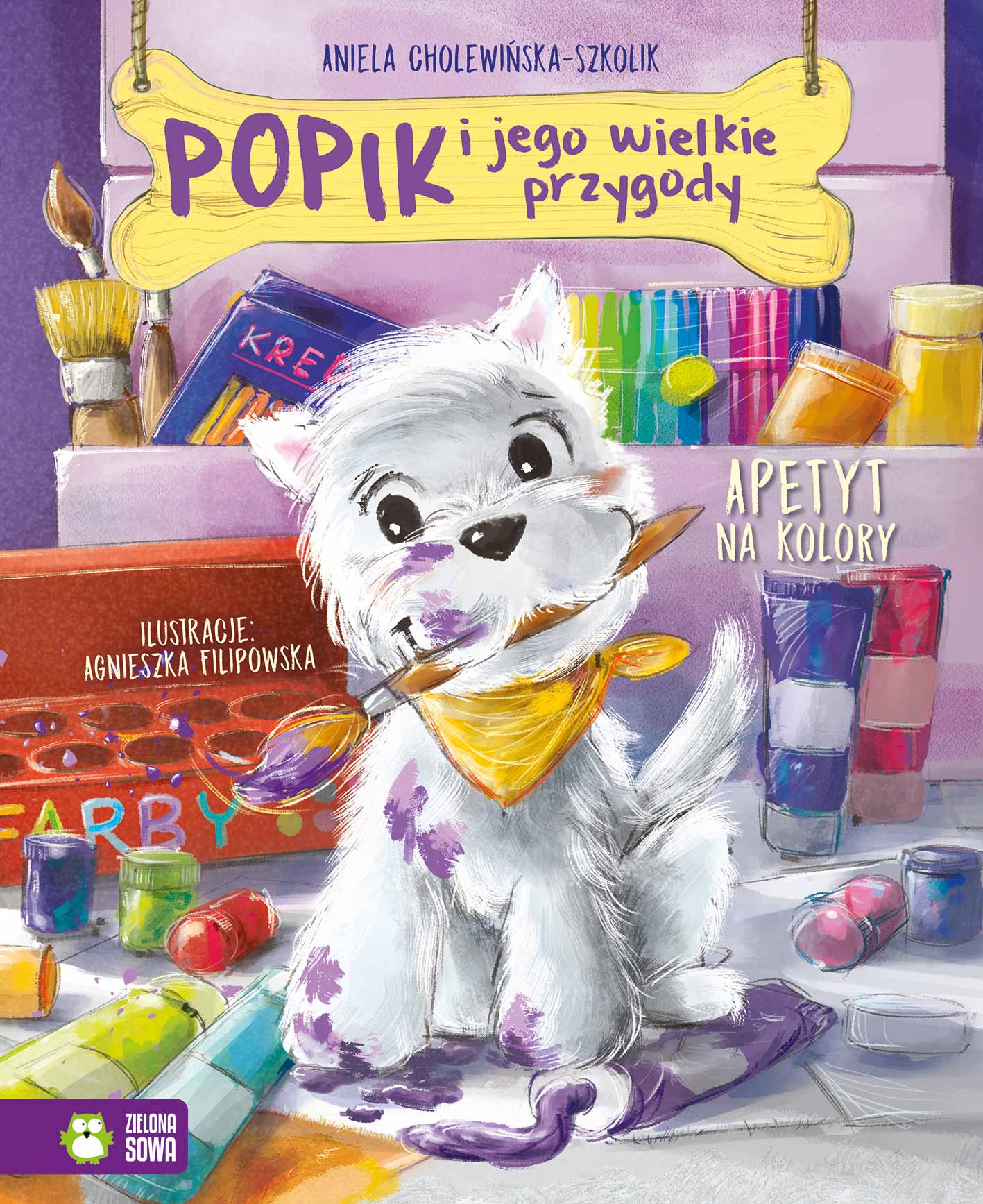 Znacie Popika? To piękny BIAŁY terierek, bardzo zadowolony ze swojego życia. Jednak gdy pewnego dnia Misia zaczyna zachwycać się KOLOROWYMI ptakami, biel nagle przestaje się podobać Popikowi Czuje się taki bezbarwny. Psiak postanawia zdobyć więcej kolorów. Tylko jak? Sięgnijcie po drugi tom przygód Popika, psiego towarzysza Misi. Tym razem poza pogonią za kolorami przed Popikiem także inne przygody: poszukiwanie piłki zagubionej wśród jabłek, wizyta u prawdziwego psa wystawowego, a nawet wyprawa na jarmark! Co jeszcze może przydarzyć się w niezwykłym psim życiu Popika?