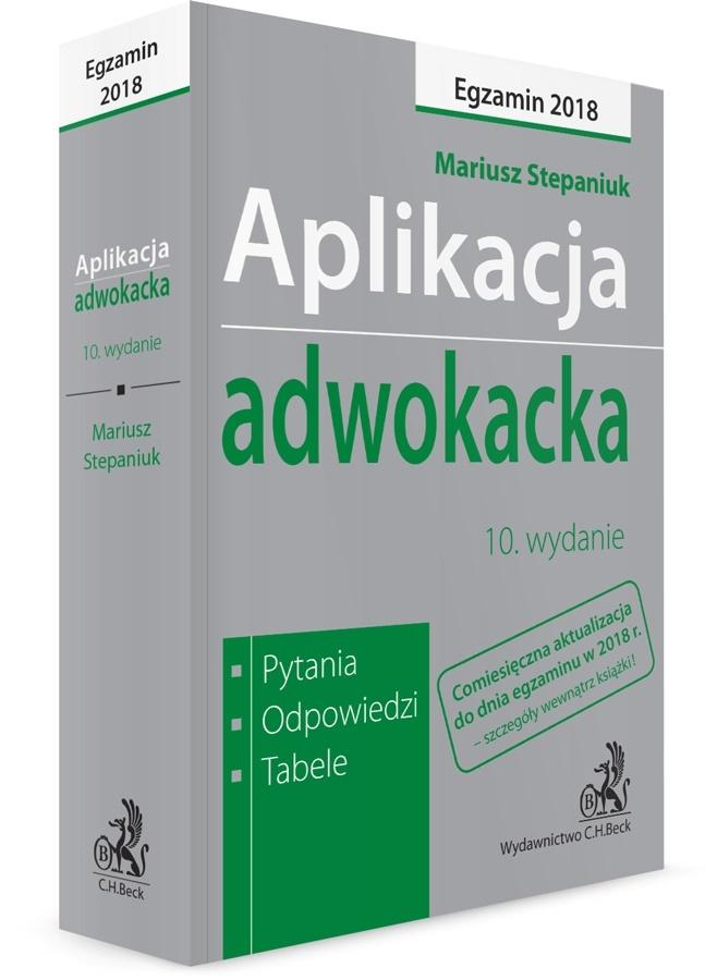 Przygotuj się do egzaminu wstępnego 2018! Zbiór znowelizowanych, szczegółowych testów jednokrotnego wyboru wraz z prawidłowymi odpowiedziami i podaniem podstawy prawnej (ponad 10 000 pytań), ułożonych w formie wygodnej tabeli, która ułatwia naukę i pozwala na bieżąco sprawdzać nabytą wiedzę. Idealna pomoc w przygotowaniu do egzaminu wstępnego: Pomoże zdać egzamin na aplikację - ponad 120 pytań z ubiegłorocznego egzaminu znajdowało się w książce. Utrwali materiał zdobyty w toku aplikacji, Przypomni wiedzę potrzebną do wykonywania praktyki zawodowej. Zawiera pytania, które padły na egzaminach wstępnych w latach 2011-2017. Pozwala sprawdzić ile pytań z poszczególnych ustaw padło na egzaminach wstępnych oraz zawiera statystykę pytań. Aplikacja adwokacka wydanie 10. obejmuje m.in. testy z: Prawa konstytucyjnego: Konstytucji RP, Sądu Najwyższego, Prawa o ustroju sądów powszechnych; Prawa cywilnego, konkurencji i ochrony konsumenta: Kodeksu cywilnego, Kodeksu postępowania cywilnego, Kodeksu rodzinnego i opiekuńczego, ustaw: o księgach wieczystych i hipotece, o kosztach sądowych w sprawach cywilnych, o ochronie konkurencji i konsumentów oraz o prawach konsumenta; Prawa handlowego i gospodarczego: Kodeksu spółek handlowych, Prawa upadłościowego, Prawa restrukturyzacyjnego, Prawa wekslowego, ustaw: o swobodzie działalności gospodarczej, o zastawie rejestrowym i rejestrze zastawów, O krajowym Rejestrze Sądowym; Prawa karnego i prawa wykroczeń: Kodeksu karnego, Kodeksu postępowania karnego, Kodeksu wykroczeń, Kodeksu postępowania w sprawach o wykroczenia, Kodeksu karnego skarbowego; Prawa pracy i ubezpieczeń społecznych: Kodeksu pracy, ustaw: o systemie ubezpieczeń społecznych, o rozwiązywaniu sporów zbiorowych; Prawa administracyjnego: Kodeksu postępowania administracyjnego, ustaw: o wojewodzie i administracji rządowej w województwie, o samorządzie gminnym, o samorządzie powiatowym, o samorządzie województwa, Prawa o ustroju sądów administracyjnych, Prawa o postępowaniu przed sądami administracyjnymi; Prawa budowlanego, mieszkaniowego, lokalnego i spółdzielczego oraz nieruchomości; Prawa o Unii Europejskiej Prawa o radcach prawnych oraz ustawy - Prawo o adwokaturze