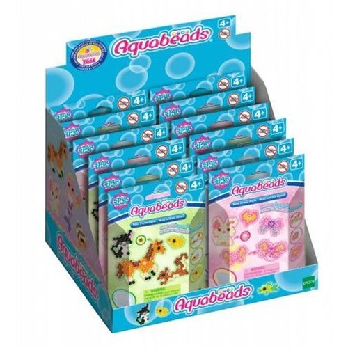 Dzięki mini zestawom można tworzyć wspaniałe motywy Aquabeads. Dostępne są mini zestawy Aquabeads o tematyce dotyczącej wiejskiej zagrody, biżuterii czy syren. Zestaw zawiera wszystko, co jest potrzebne, aby od razu rozpocząć zabawę: 180 kolorowe koraliki, podkładkę do układania, spryskiwacz i zestaw arkuszy z szablonami. Koraliki łączą się w magiczny sposób podobnie jak koraliki do prasowania. Różnica: Zabawa odbywa się bez użycia żelazka, koraliki łączy się przez spryskanie ich wodą. Produkt przeznaczony dla dzieci od 4 roku życia.