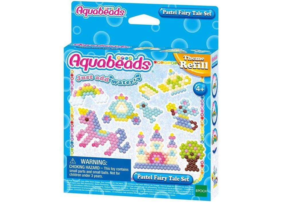 Koraliki Aquabeads oryginalne od 2004 roku! Z zestawem Aquabeads Pastelowy świat baśni dziecko zanurzy się w baśniowym świecie. Zestaw umożliwia wykonanie wspaniałych figurek, takich jak pałac, jednorożec, tęcza, drzewo i wielu innych, a wszystko to bez użycia żelazka i kleju. Koraliki Aquabeads łączą się ze sobą po spryskaniu ich wodą. Zestaw zawiera ponad 600 barwnych koralików do zabaw kreatywnych w 11 kolorach oraz bajeczne szablony.