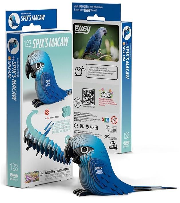 Eugy zaprojektowane w Nowej Zelandii są wykonane z przyjaznego dla środowiska kartonu pochodzącego z recyklingu i farby na bazie ryżu. Zestaw zawiera 27 ponumerowanych elementów układanki, nietoksyczny klej, oczka oraz instrukcję do zbudowania niebieskiej papugi. Zbierz całą serię zwierząt, ptaków, dinozaurów i wiele innych. Dla dzieci w wieku 6 lat +.
