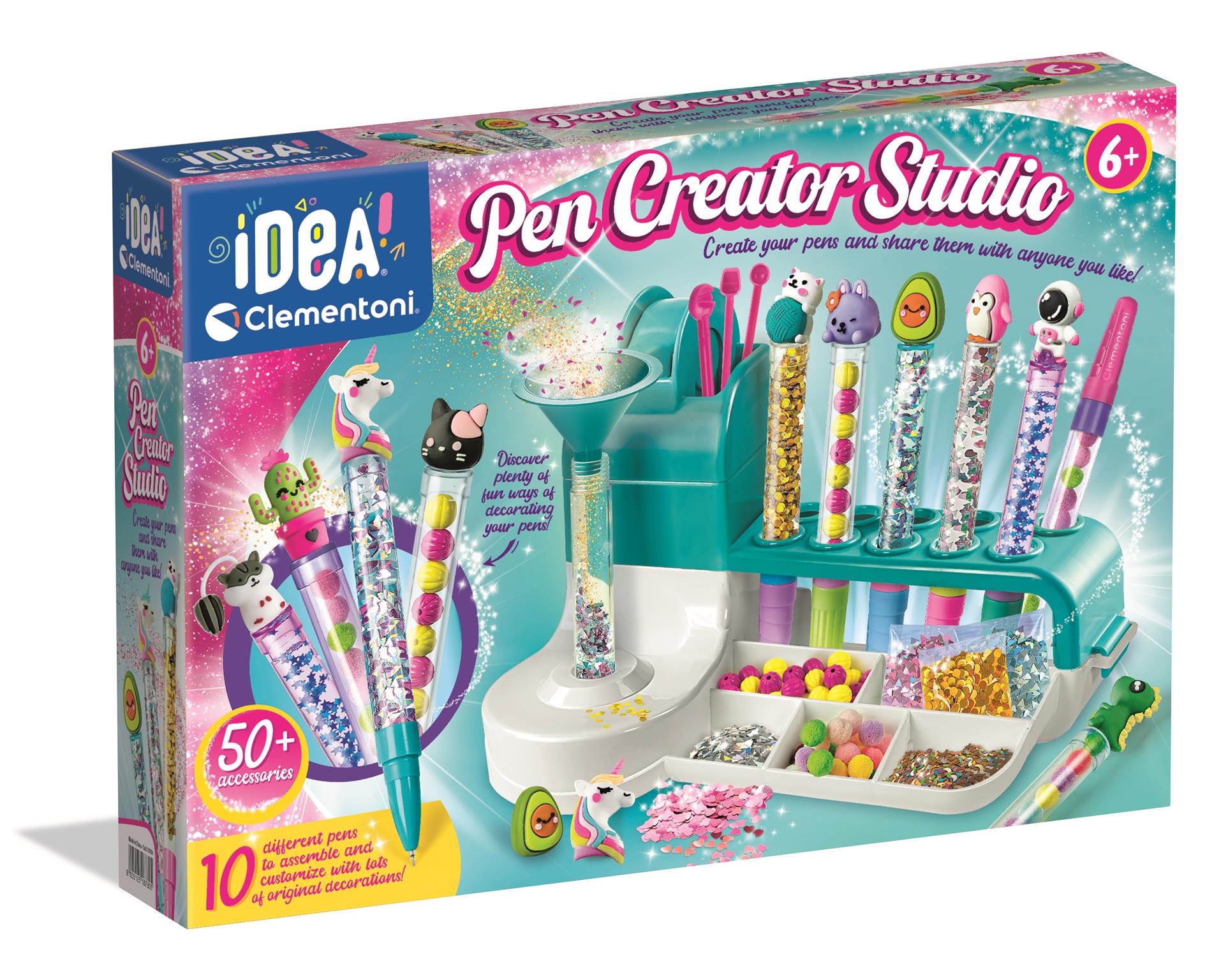 Oryginalne kreatywne laboratorium do zabawy przy tworzeniu mnóstwa kolorowych długopisów! Nowy zestaw Idea, który pozwala dzieciom tworzyć i personalizować długopisy za pomocą wielu akcesoriów i dekoracji. Podręczny blat do ćwiczeń i bogaty zestaw instrumentów wspomagających zabawę daje niesamowity efekt! Dzieci będą mogły zrobić znacznie więcej niż tylko personalizację długopisu: zaangażują się w prawdziwy twórczy wysiłek! Opracowany i zaprojektowany we Włoszech.