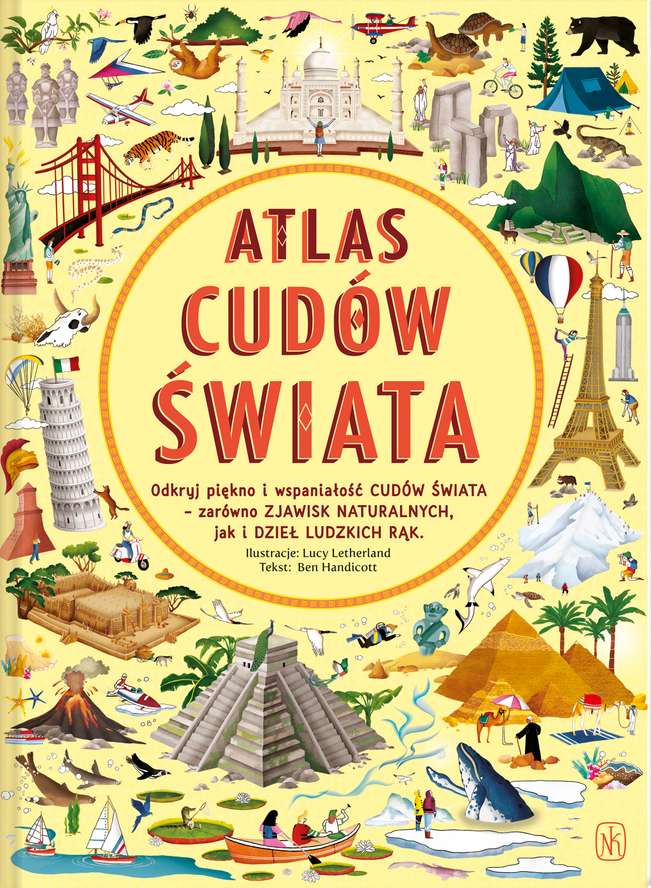Uruchom wyobraźnię i wyrusz w pełną przygód podróż dookoła świata. Na każdym kontynencie zobaczysz oszałamiające cuda przyrody bądź wytwory ludzkiego geniuszu. Poznasz 31 niezwykłych miejsc na Ziemi. Zdobędziesz Mount Everest, opuścisz się na dno Rowu Mariańskiego, przemierzysz Dolinę Śmierci i zwiedzisz Zakazane Miasto – wystarczy, że pozwolisz tej książce pobudzić twoją fantazję. „Atlas cudów świata” jest bogato ilustrowany i zawiera setki faktów oraz ciekawostek. Ben Handicott studiował lingwistykę i pedagogikę. Uczył się wietnamskiego i mandaryńskiego, mieszkając kilka lat w Azji. Po powrocie wydawał książki w Lonely Planet. Teraz próbuje zaszczepić miłość do podróży, jedzenia i języków obcych swoim dzieciom. Lucy Letherland ukończyła Manchester School of Art (Ilustracja i Animacja), mieszka w Londynie. Jej prace są pełne humoru, akcji i szczegółów. Tworząc je, łączy rysunek ręczny z techniką cyfrową.